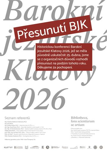 S potěšením jsme přijali zprávu, že Mons. Stanislav Přibyl bude slavnostně uveden na svatovojtěšský arcibiskupský stolec při pontifikální mešní liturgii slavené ke cti sv. Vojtěcha v katedrále sv. Víta, Václava a Vojtěcha. Pro nás méně potěšující je, že intronizace proběhne v sobotu 25. dubna, tedy v den, na který jsme plánovali konferenci Barokní jezuitské Klatovy 2026. Vzhledem k tomu, že někteří z pozvaných na konferenci jsou zároveň pozvaní i na slavnost do Prahy, jsme se rozhodli Barokní jezuitské Klatovy přesunout na podzim. (Zapsal: Městská knihovna Klatovy, 10.04.26) | |