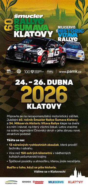 Jubilejní 60. RŠK a k tomu 34. HVR. Přijeďte zafandit našim nejlepším posádkám v rámci RŠK a osobně se podívat na začátek nové éry EHRC! Historická vozidla, která připomenou zlaté časy rally kolem přelomu tisíciletí! Vracíme legendární Klatovský okruh, zavítáme na tratě WRC a možná se i hezky proletíme…:)