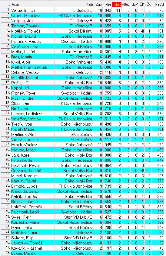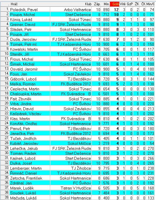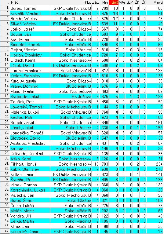 Statisktika střelců branek po 10.kole okresních soutěží mužů