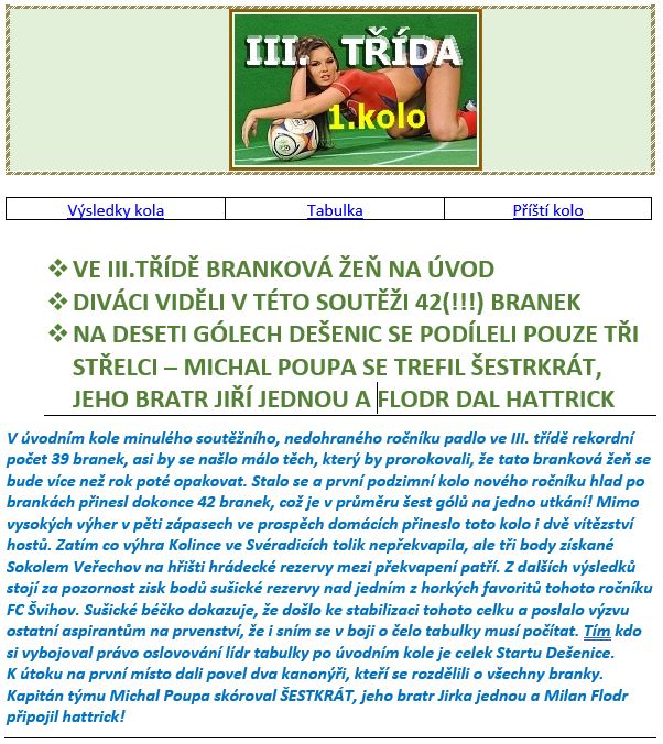 Úvodní kolo III.třídy přineslo rekordní žeň branek