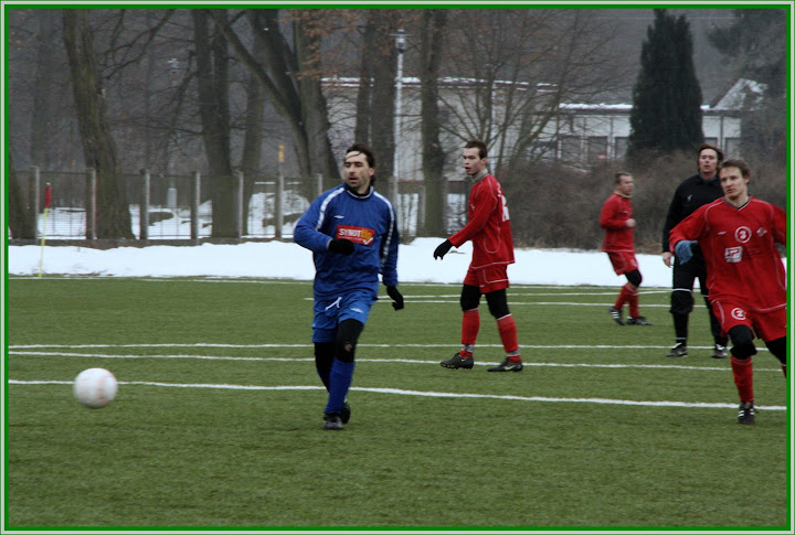 Strážov vstoupil do zápasu s jistou dávkou respektu k soupeři z čela tabulky 1.A třídy, terénu a také i balonu, který si hráči Strážova po Novém roce měli možnost osahat poprvé. Sušice tak od prvních minut byla aktivnějším týmem. Hrou krátkých přihrávek držela častěji míč na svých kopačkách a sušičtí hráči dobře kombinovali ve středu hřiště. Jejich snaha o steč strážovské branky však po hříchu končila povětšinou před pokutovým územím hostí ve skrumáži těl a nebo nepřesným centrem. Přesto si několik slibných šancí hráči domácího celku vytvořili. Tu největší prohospodařil nikým neatakovaný Sládek, který v dobré pozici trefil pouze tyč Javorského branky. Do několika střeleckých šancí se dostali i hráči Strážova, ty však byly pramálo nebezpečné.