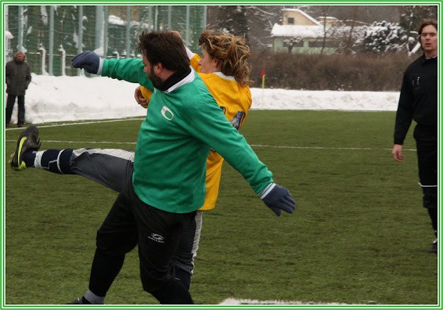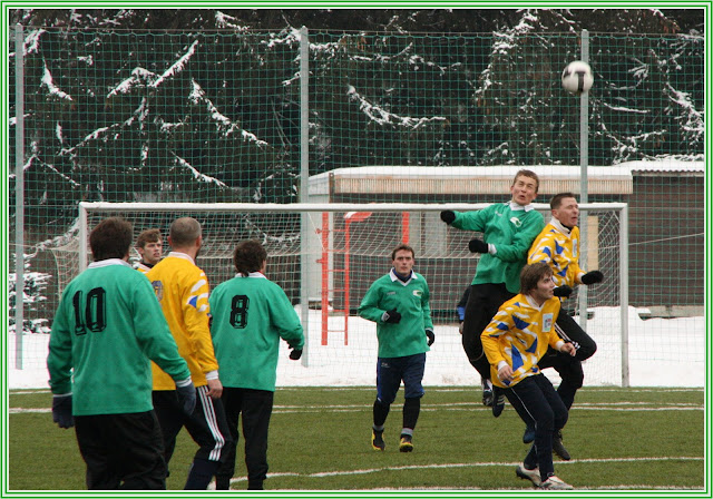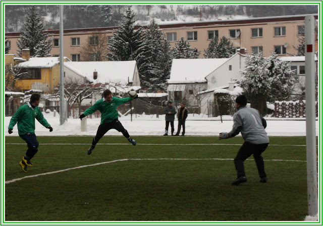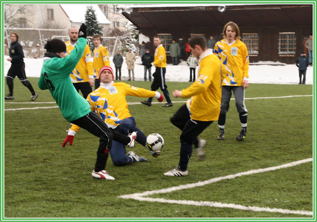 V dalším utkání turnaje jsme potkali soupeře, v jehož řadách hraje několik našich bývalých spoluhráčů, na naší straně pak mělo několik hráčů citovou vazbu na Strážov a tak se očekávalo trochu víc emocí. Opak však byl pravdou. Až na několik drobnůstek se oba týmy soustředily od začátku na svoji hru a to bylo pro fotbal, pro diváka a nakonec i pro hladký průběh přípravy moc dobře. Tradičně to byl opět soupeř, který zahájil partii lépe. V prvních pěti minutách dvakrát nepříliš nebezpečně, ale přece, ohrozil střelou naší branku. Herman byl poroznější, než obránci před ním. My jsme však tentokrát hru otočili a začali určovat kompetence poměrně brzy. V 8. minutě se ideálně trefil z pětadvaceti metrů přízemní střelou Vítovec, brankář Javorský měl ale výhrady a poprvé v utkání naznačil, jak těžké to s ním naši kanonýři budou dnes mít. Naše převetí iniciativy dokladuje počet šancí v následující desetiminutovce, kdy postupně Vašek Zedník i Ondra Kotrnoch několikrát provětrali obranu , mířili však zatím pořád mimo terč. Ve 26. minutě opět Kotrnoch pronikl středem do pokutového území, udělal kliku brankáři, dostal se však z úhlu a gólový pokus levačkou vyšuměl do odkopu obráncem z prázdné branky. Za čtyři minuty nato představil Zedník konečně svoje přednosti a v podobném průniku se již křížnou střelou na zadní tyč nemýlil. V 38. minutě zakončil svoji samostatnou akci "Dani" Matějka a lobem a lá Poborský trefil druhou kasu. Uzavžel tím poločas, na který se z naší strany nechalo dívat, a to jsme ještě netušili, co se bude dít v půli další. Po změně stran nastoupila do hry hned čtveřice čerstvých hráčů a do stylu zápasu dobře zapadli, neboť si sebou na hřiště vzali i chuť a aktivitu, kterou je pravděpodobně nakazili spoluhráči svým prvopoločasovým výkonem. Při čtvrthodinovém sehrávání nové sestavy se z brejkové akce dostal Strážov do jedné z mála šancí, střela ale minula kýžený cíl. V 69. minutě jsme po rohu, zahraném Tomanem, šli do tříbrankového vedení "Daniho " hlavičkovým protažením na zadní tyč. V 75. minutě zahrozili strážovští nejnebezpečnějším kontrem v utkání , Gajdůšek však ani nadvakrát neprostřelil jistého Hermana , který tím předvedl, že jeho měšec je i po zimě plný kouzel a čar, což je pro nás moc příjemné zjištění. Tímto okamžikem Strážov začal na hřišti vyklízet pozice a přišly chvíle, které v každém utkání divák vítá. Spousta šancí a očekávání, jek asi naroste závěrečný účet ?!. Jenže na dvouciferný výsledek, na který to najednou začalo vypadat, se naši střelci nejen nedostalioni už nebyli schopni ani z těch nejvyloženějších pozic stávající skóre byť jen o gól posunout. Javorský v brance vykonával svojí práci excelentně a přiváděl nás některými zákroky k zoufání. Poločasovou přestávku zřejmě využil, aby si dobře postavil branku, neboť její konstrukce mu také asi třikrát pomohla. Postupně si své střelecké ego pošramotili snad všichni hráči naší ofenzívy / Zedník, Toman, Matějka, Votípka, Kotrnoch/ největším smolařem byl ale vyhlášen po utkání Michal Frous, který se svojí velkou aktivitou i schopnostmi sice do tutovek dostával, jejich řešení však bylo ve všech případech smolné a děsivé zároveň. V tomto utkání jsme konečně naznačili, jakým způsobem se má práce na hřišti dělat. Jako kdyby někdo mávl kouzelným proutkem . Celý tým vypadal mnohem soustředěněji, všichni byli najednou naladěni na stejnou vlnu a určitě se i fotbalem dobře bavili. Nejpříjemnějším momentem byl výkon "Raracha" Tomana. Takové nasazení , chuť do hry, snaha o vytváření šancí pro spoluhráče i pro sebe bylo podle starých rukopisů u něj zaznamenáno naposled někdy pře dvěma lety. Kdyby se nám podařilo odbourat jeho poslední nešvar, 3 658 dotyků s míčem navíc, byl by na jaře na svém vysněném postu určitě hodně platným hráčem. Takže v souhrnu, s předvedenou hrou, s fyzickou kondicí a s hladem po vítězství spokojenost, nyní nastává čas zaměřit se na speciální fotbalovou přípravu, práci s míčem, standartní situace a hlavně klid v koncovce při proměňování vypracovaných šancí.
