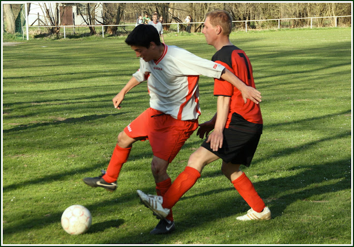 Ve 30' přišla chvíle kapitána hostů Michla Poupy. Během tří minut se dokázal prosadit hned dvakrát a zajistil hostům slibné vedení. Domácí však zápas nevzdali a kontrovali brankou do šatny, kterou zařídil dorostenec Martin Vepřek.Druhý poločas byl už plně v režii domácích, vytvořili si obrovskou převahu a velkou spoustu šancí. Byl to nervy drásající souboj mezi domácími střelci a výborným gólmanem hostů.Nakonec byli šťastnější domácí, kdy až v samotném závěru zápasu strhli vedení na svou stranu...