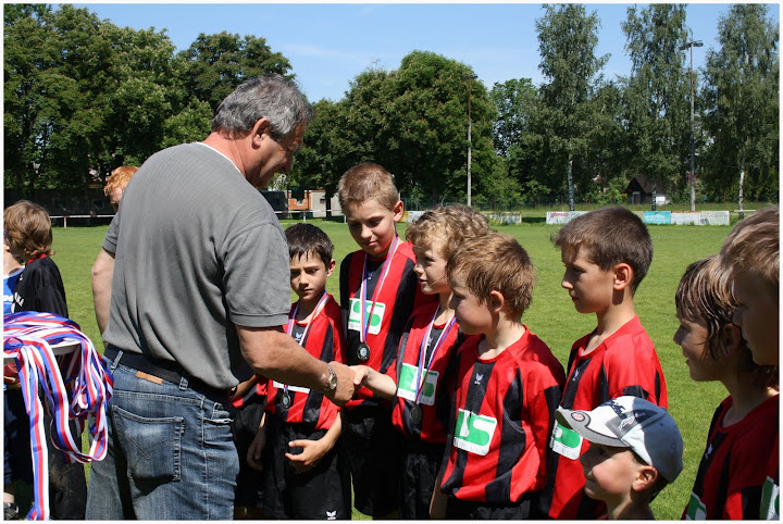 Okresní přebor mladších a starších přípravek má již za sebou poslední kolo ročníku 2009/2010. Po skončení závěrečného duelu v Lubech ve kterém se domácí hráčský potěr rozešel s Okulou Nýrsko dělbou bodů 3:3(na foto Luby v černém, Nýrsko v červenočerné kombinaci dresů ) došlo na slavnostní předání medailí oběma medailistům. Tento výsledek již neměl vliv na konečné pořadí, když za vítěznou Sušicí skončila Okula Nýrsko a třetí START Luby. Součastně při této příležitosti převzali stříbrné medaile za umístění na druhém místě domácí zástupci v nejmladší věkové kategorii. Medaile předal za STK OFS Klatovy její člen Karel Janda.