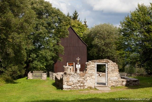 Kapli sv. Kříže nechal postavit roku 1820 Jiří Kryštof Abele jako rodinnou hrobku. Jako první zde byla pochována v roce 1832 Marie Zuzana Hafenbrädlová, vdova po majiteli bavorské Železné Rudy. V kryptě bylo pohřbeno 26 členů sklářských rodin Hafenbrädelů a Abelů. K nim patřil i otec Karla Klostermanna. Dřevěné rakve měly horní část prosklenou, aby bylo vidět na mumie těl, které byly často ozdobeny i velmi vzácnými šperky.