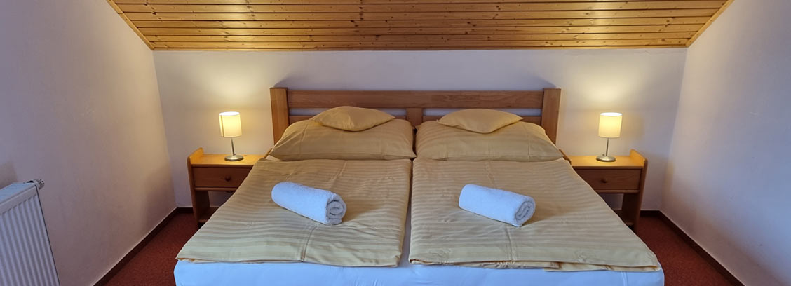 Nabízíme ubytování v apartmánech s kapacitou 10 míst. K dispozici jsou dva 4 lůžkové apartmány a jeden dvoulůžkový apartmán.