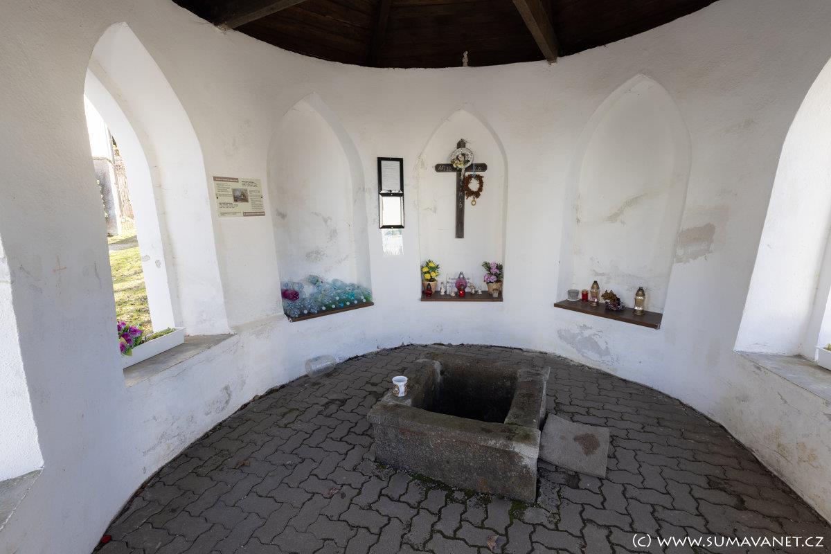 U kostela se nachází pramenná kaple nad studánkou (údajně) léčivé vody, pro kterou si jezdí lidé z širokého okolí.