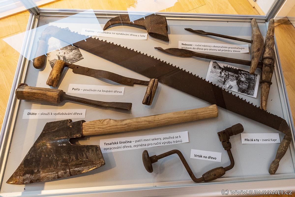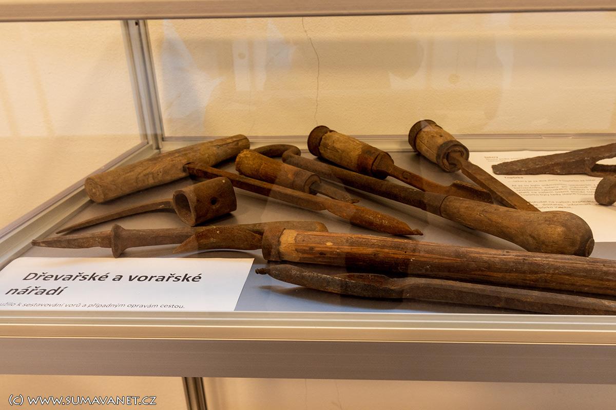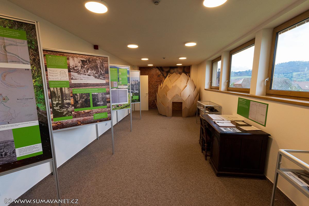 Vznikla v rámci projektu přeshraniční spolupráce Česká republika – Svobodný stát Bavorsko: 133 - Dřevařství na Šumavě a v Bavorském lese, Forst- und Holzwirtschaft im Böhmerwald und im Bayerischen Wald, libreto vytvořili pracovníci Západočeské univerzity v Plzni.Expozice objasňuje, proč a jak byl osud obce Dlouhá Ves za vlastnictví rodu Schwarzenbergů spojen s rozvojem dřevařství, jak „zlatý brouček“ ovlivnil život obyvatel Šumavy. Ukazuje také typické dřevařské činnosti a nářadí při něm používané, stejně jako se dotýká i každodenního života dřevařů – od typických dřeváků zvaných nejšle až po důchodový přídělový systém, který rod Schwarzenbergů pro své dřevaře vytvořil již v 19. století.