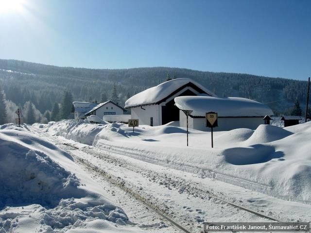 9. července 1900 byla zprovozněna železniční trať spojující Vimperk a Lenoru. Na této trati bylo v Kubově Huti zřízeno nádraží, které svou polohou ve výšce 995 m nad mořem je nejvýše položenou železniční stanicí v Čechách.