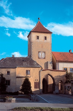 Zbytek městského hrazení z počátku 16. století. Horní patra této věže byla z neznámých důvodů odstraněna již počátkem 17. století. Vedle brány stálo vězení a dům branného. Před touto branou stávala ještě jedna brána s padacím mostem, která byla zbořena v polovině 19. století. Proto stávajícíí torzo brány nemá ze své vnější strany žádný výklenek pro padací most.