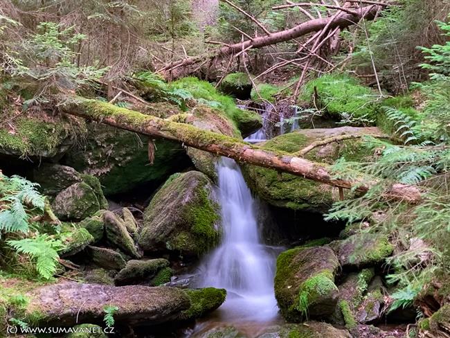 Dvojice menších (ale krásných) vodopádů na levostranném bezejmenném přítoku Úhlavy, nedaleko Zadních Hamrů.