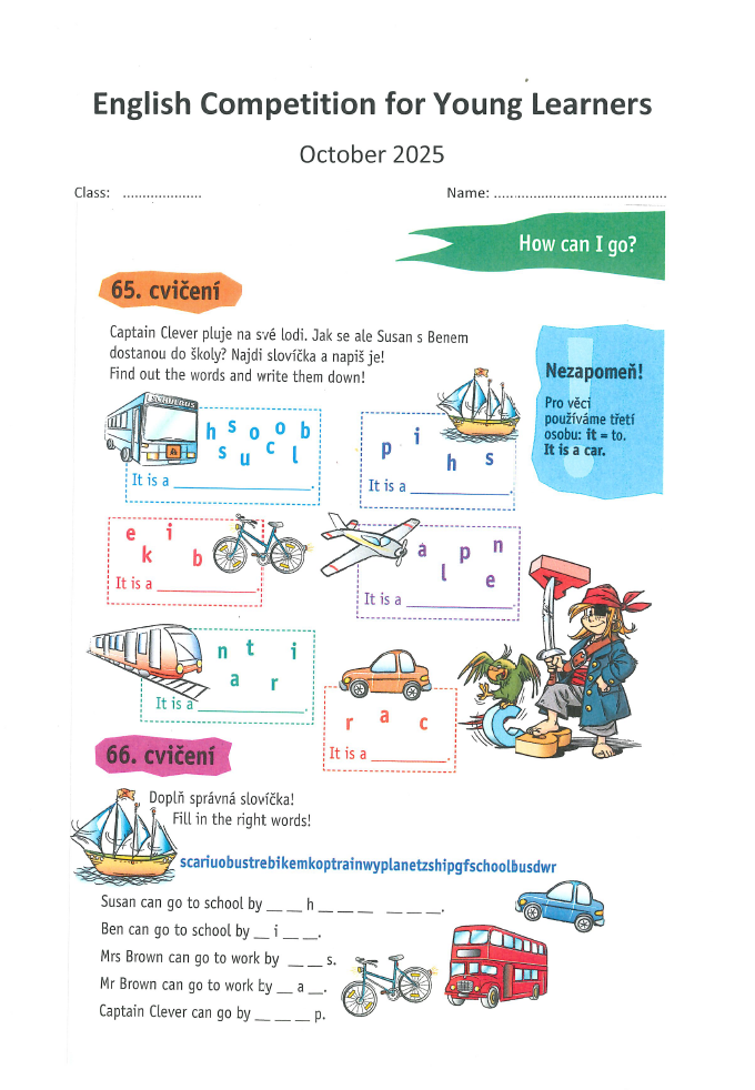 Anglický jazyk - "English Competition for Young Learners" - pro 1. stupeň