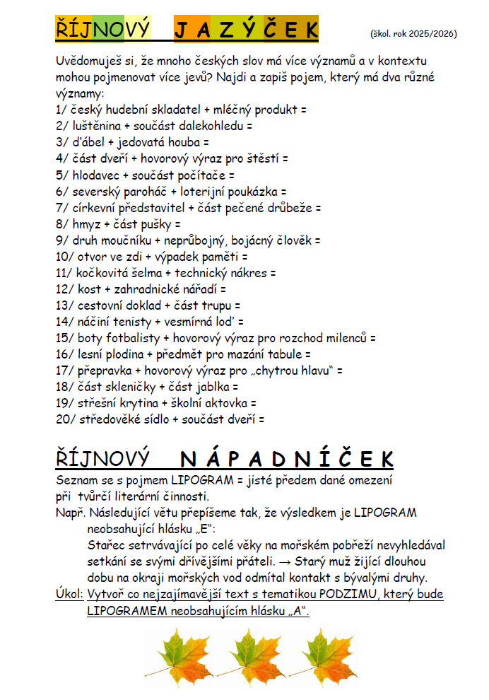 Český jazyk - "Jazýček" (ke stažení v pdf)