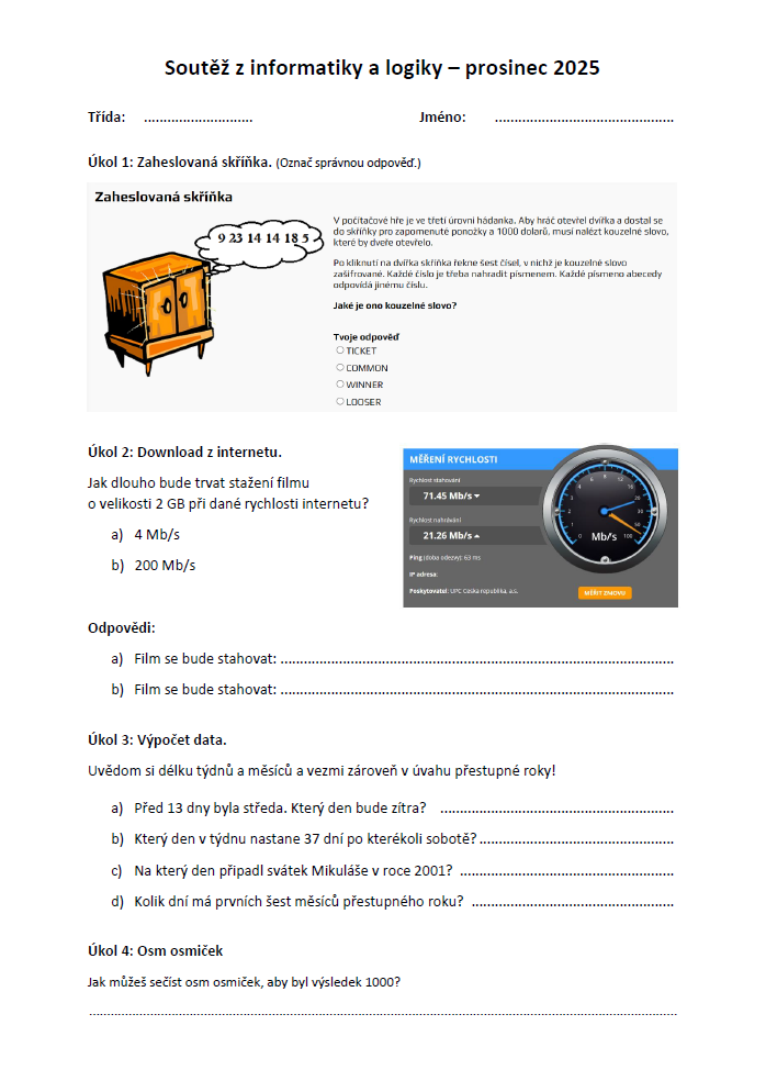 Matematická soutěž - "Logik" (ke stažení v pdf)