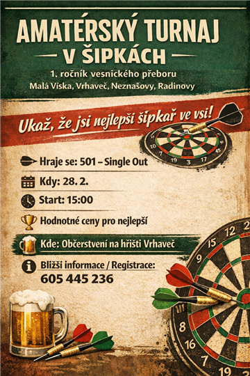 | Amatérský turnaj v šipkách | |