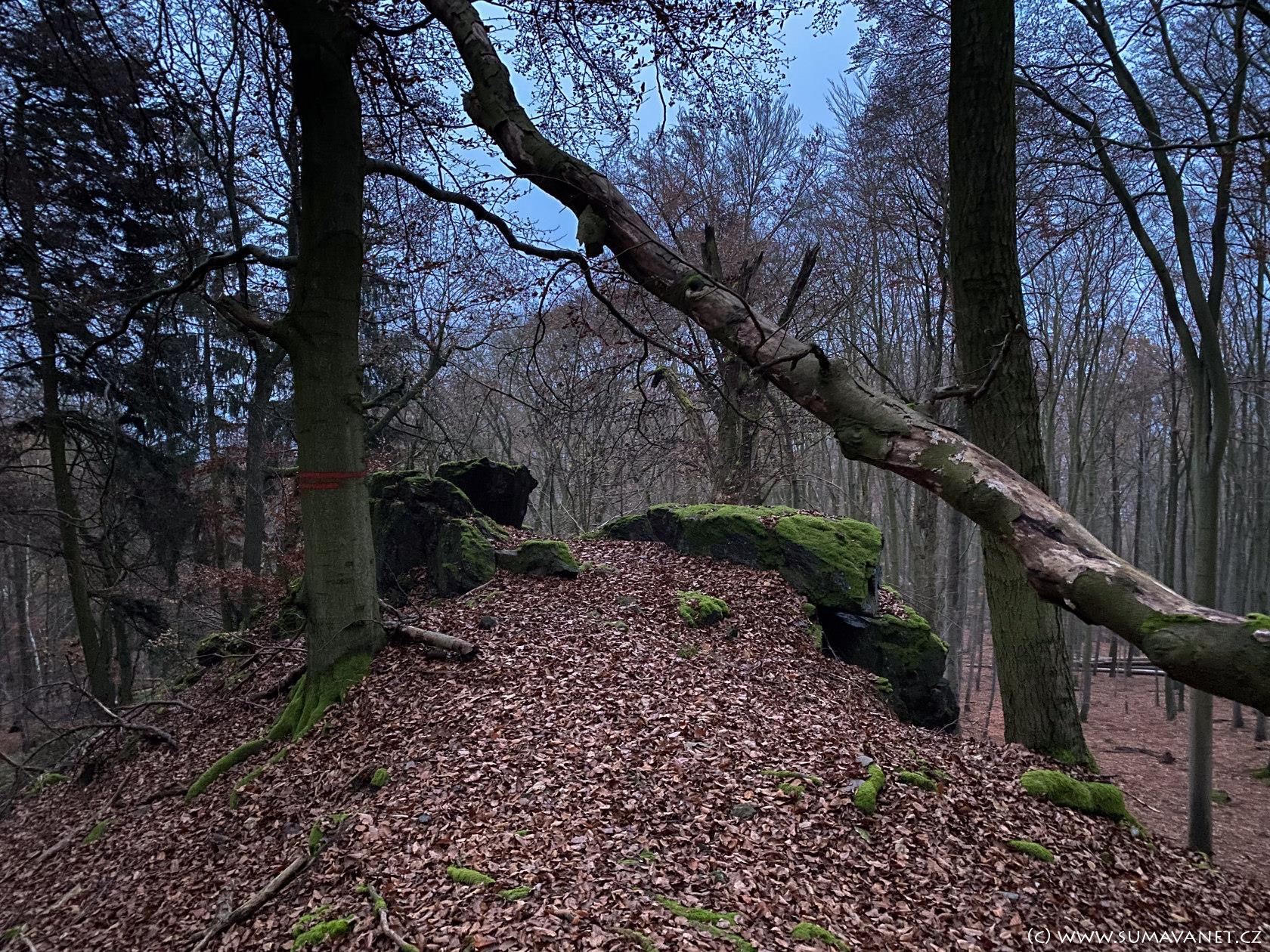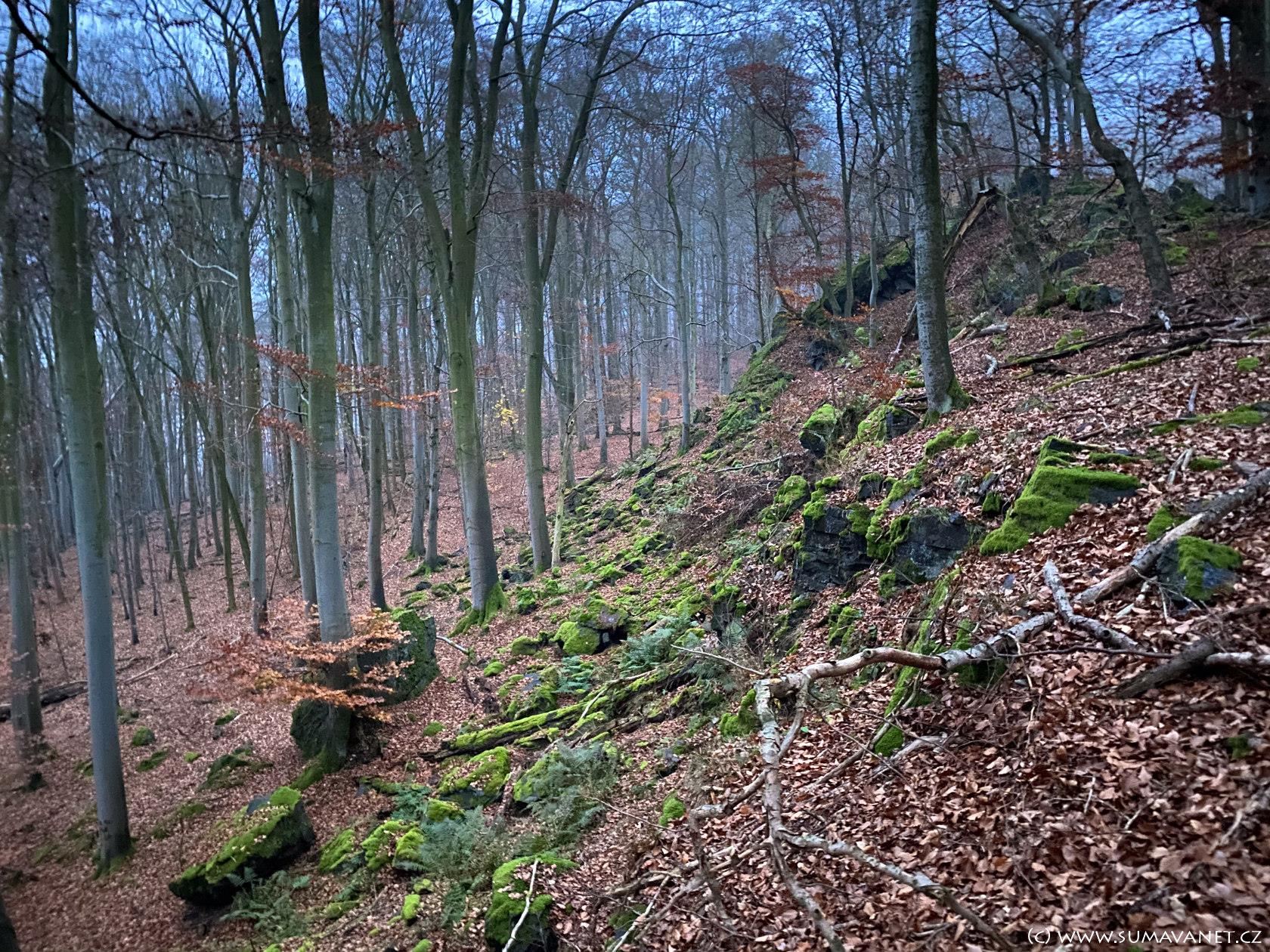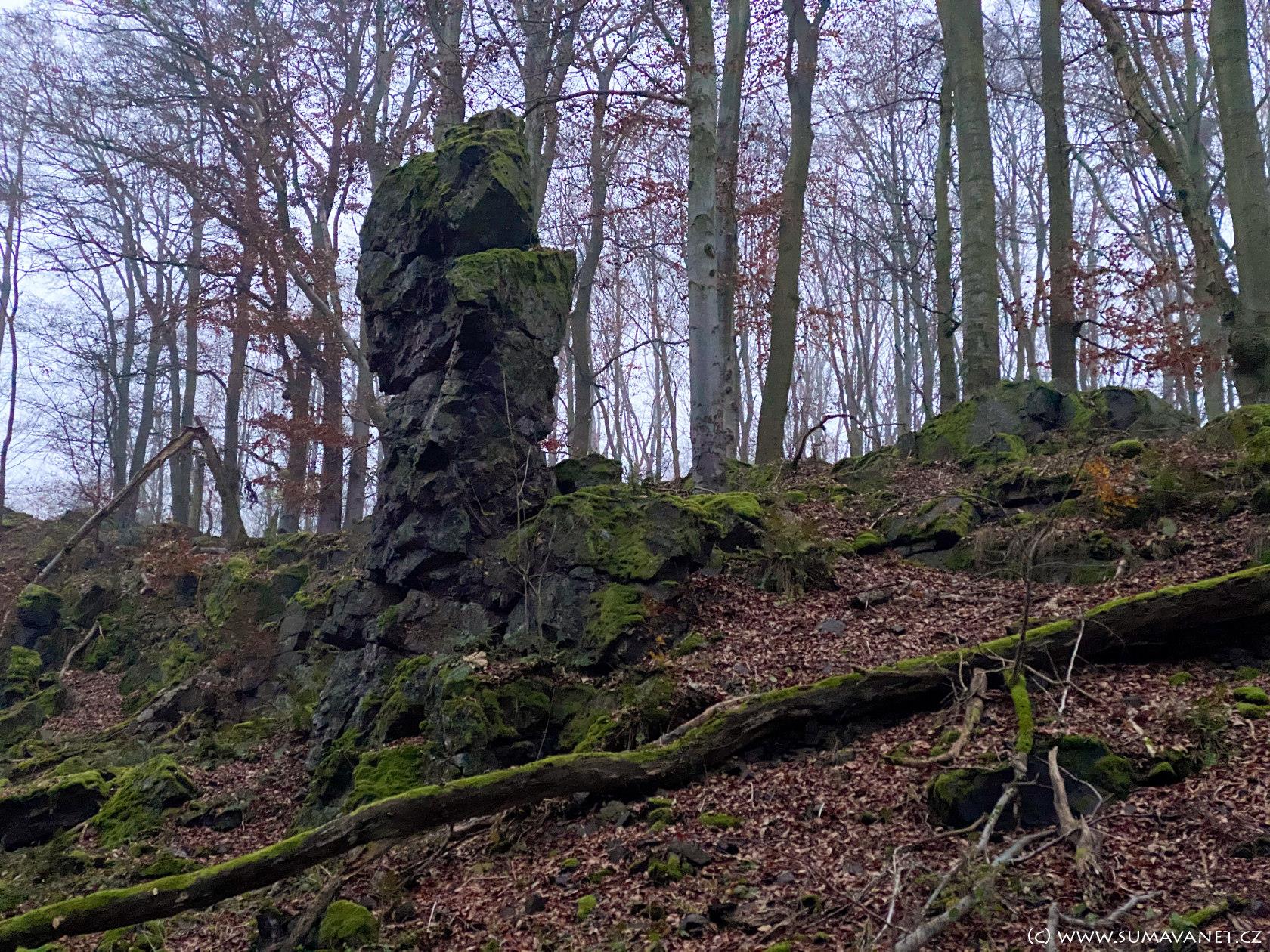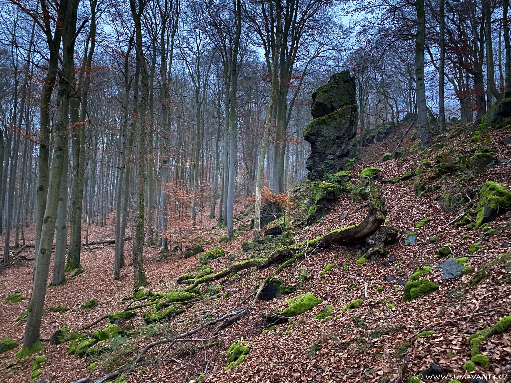 V severní části se nachází výrazná skalka nazývaná Kazatelna českých bratří, která z určitých úhlů připomíná lidskou hlavu. Nedaleko cesty můžete narazit na osamělý skalní útvar zvaný Samohrd.