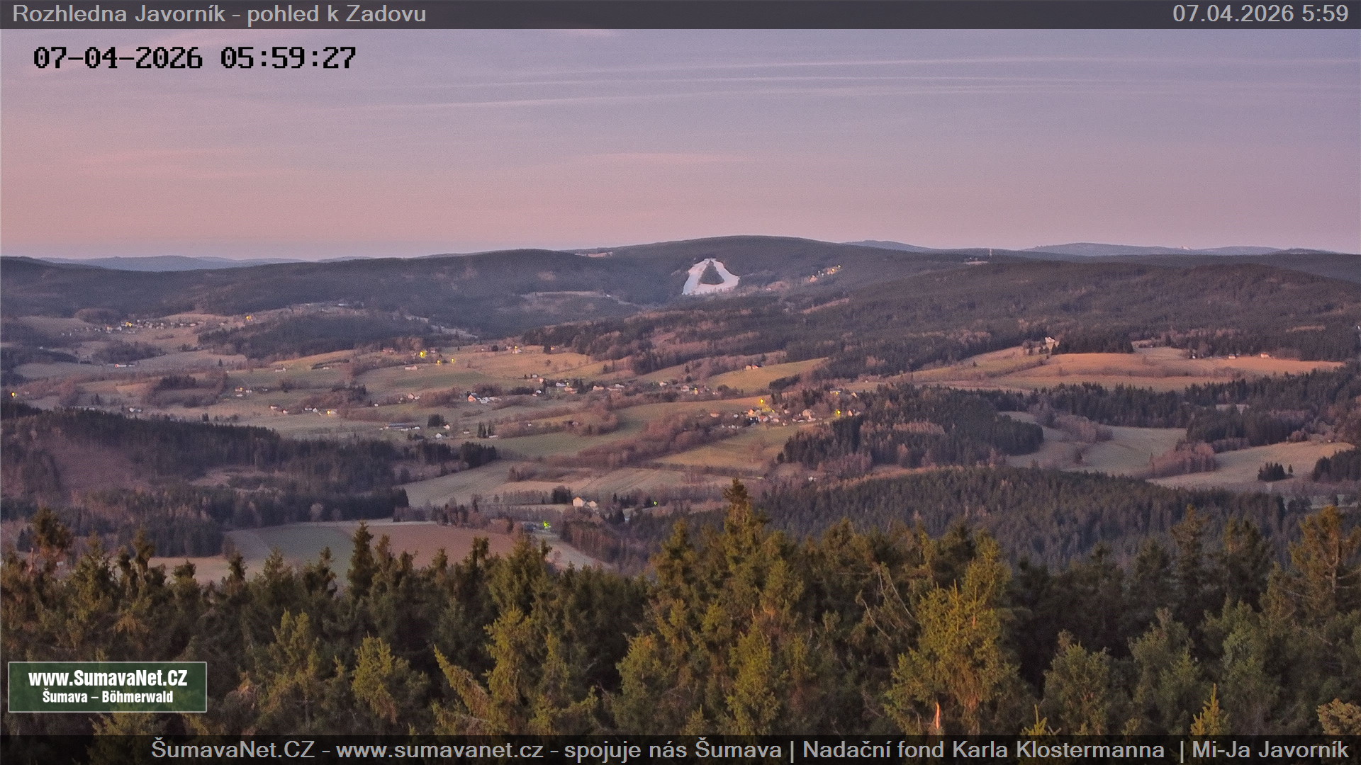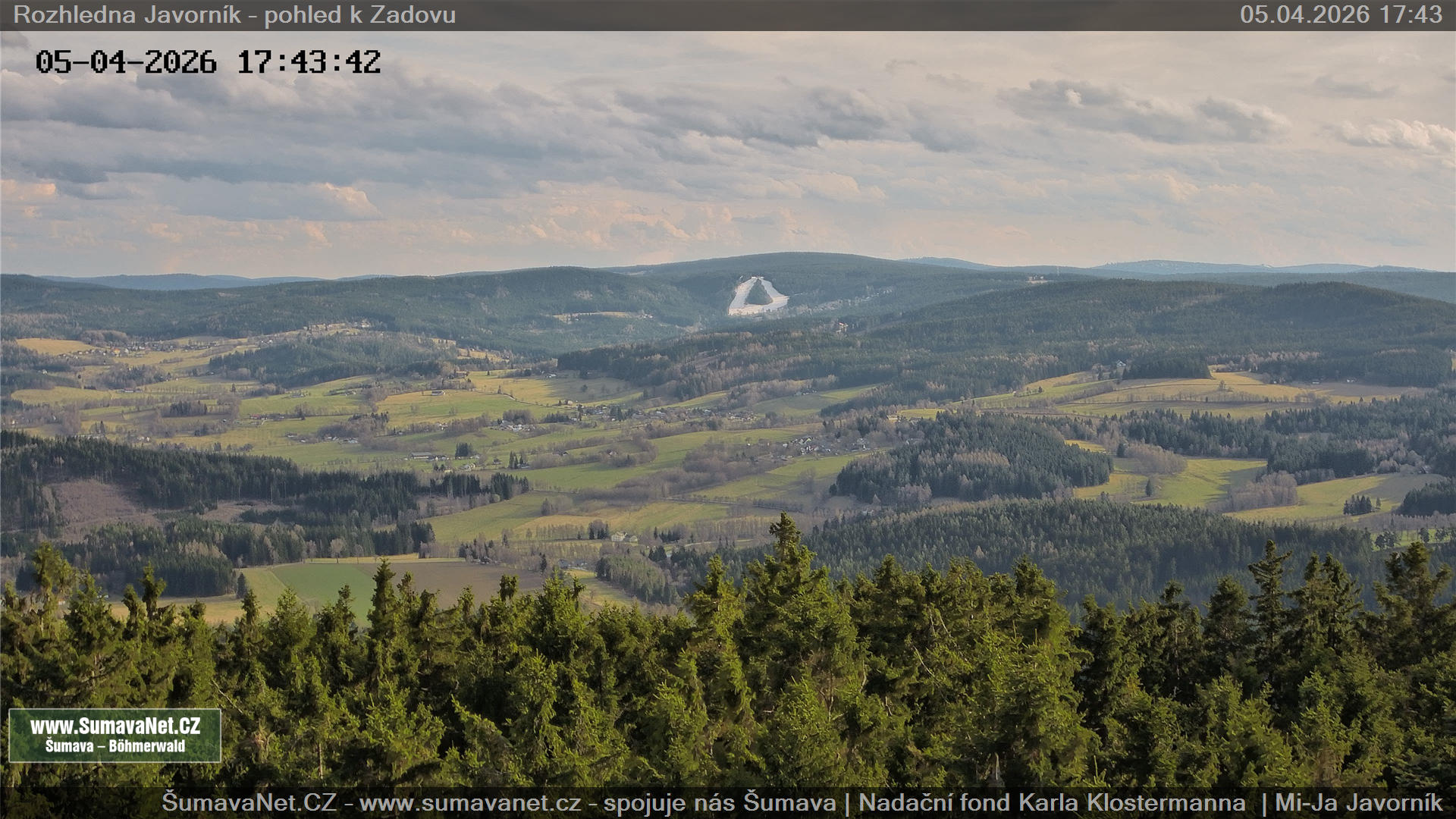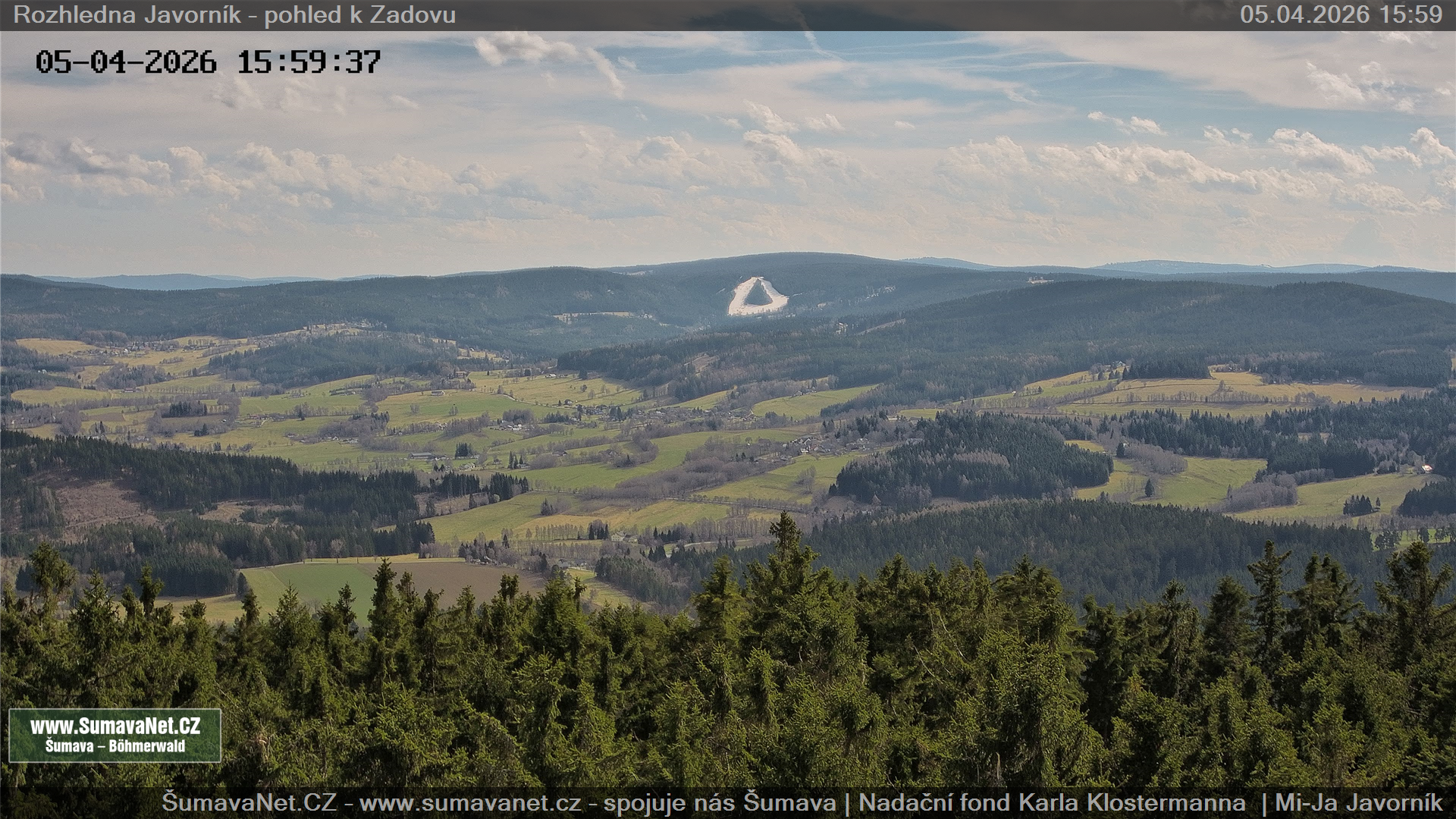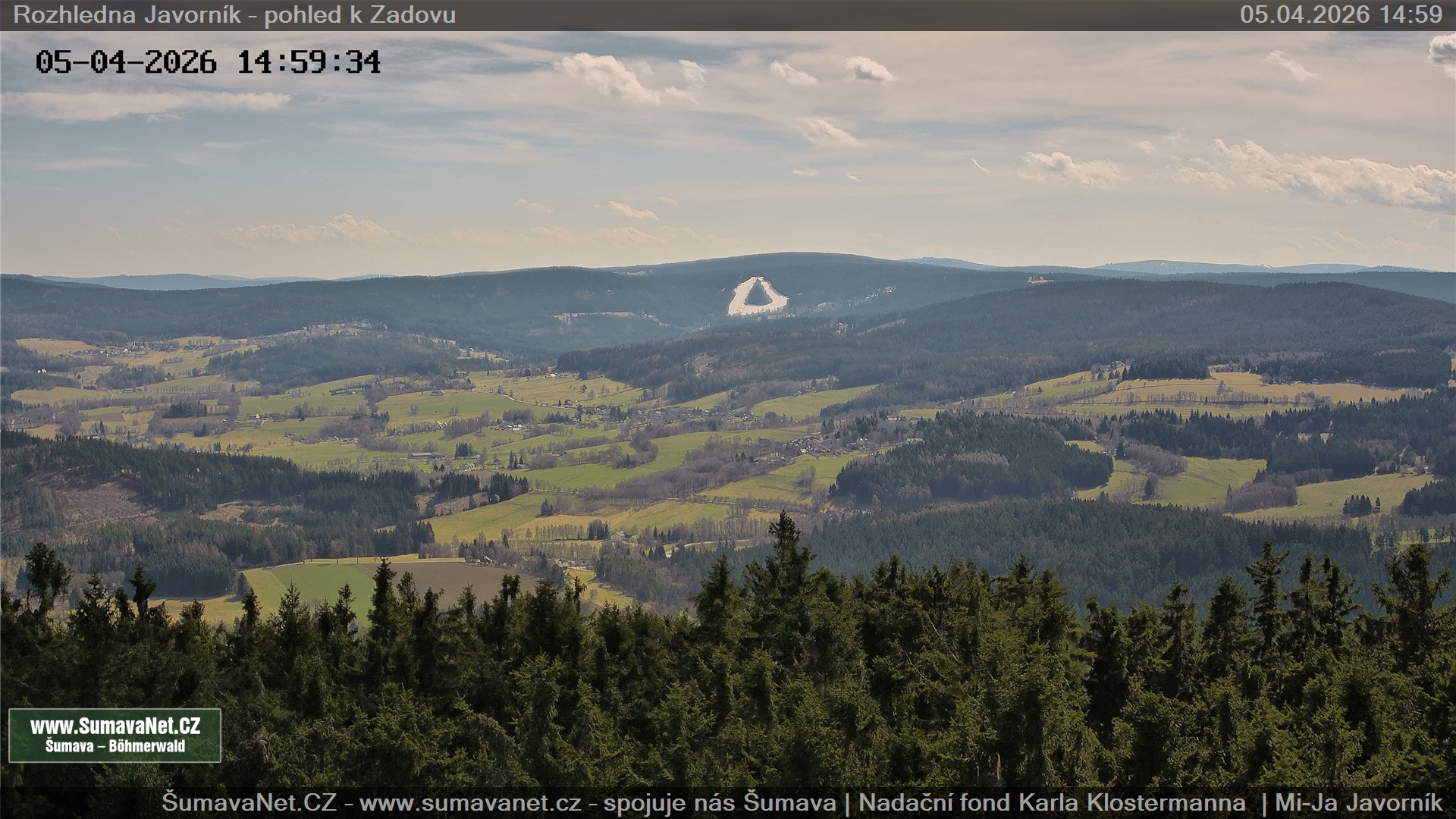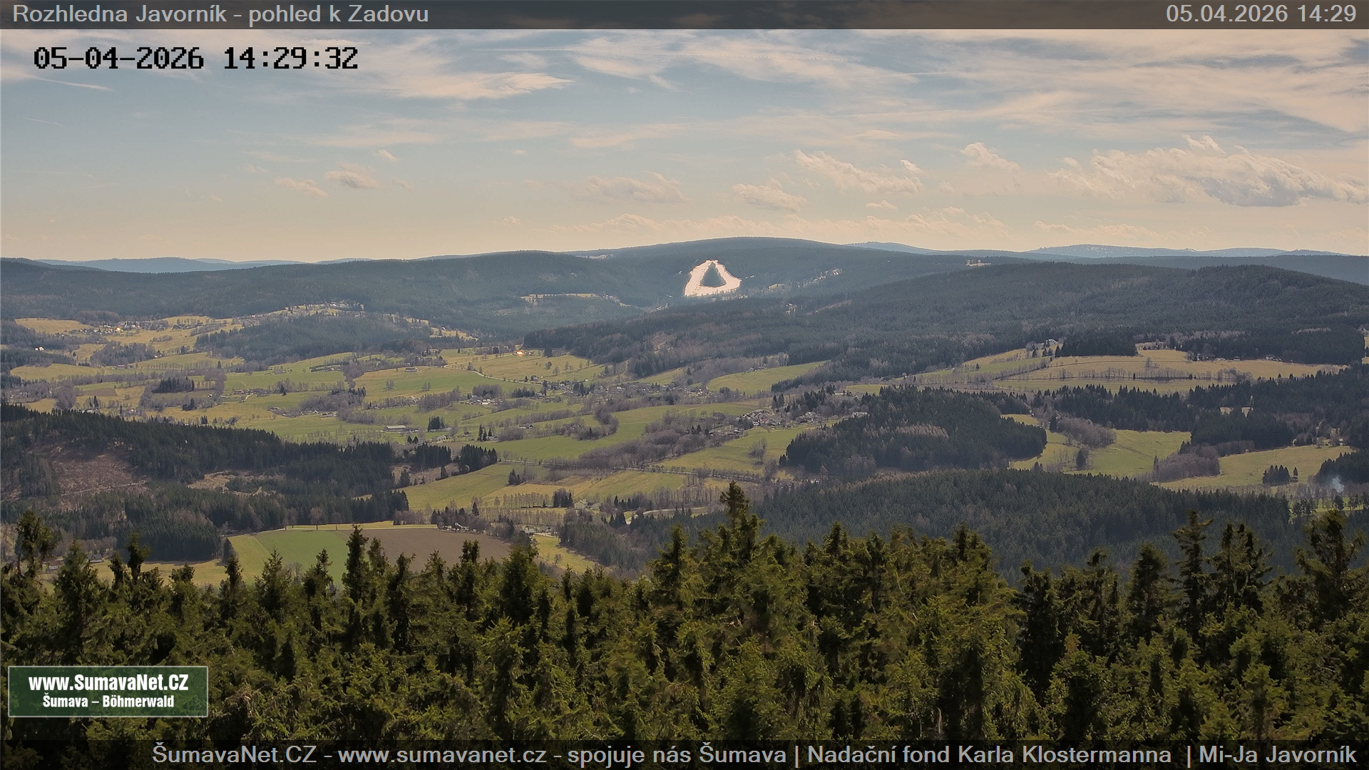 Javorník - rozhledna, pohled k Zadovu: 10.04.2026 – 10.04.2026