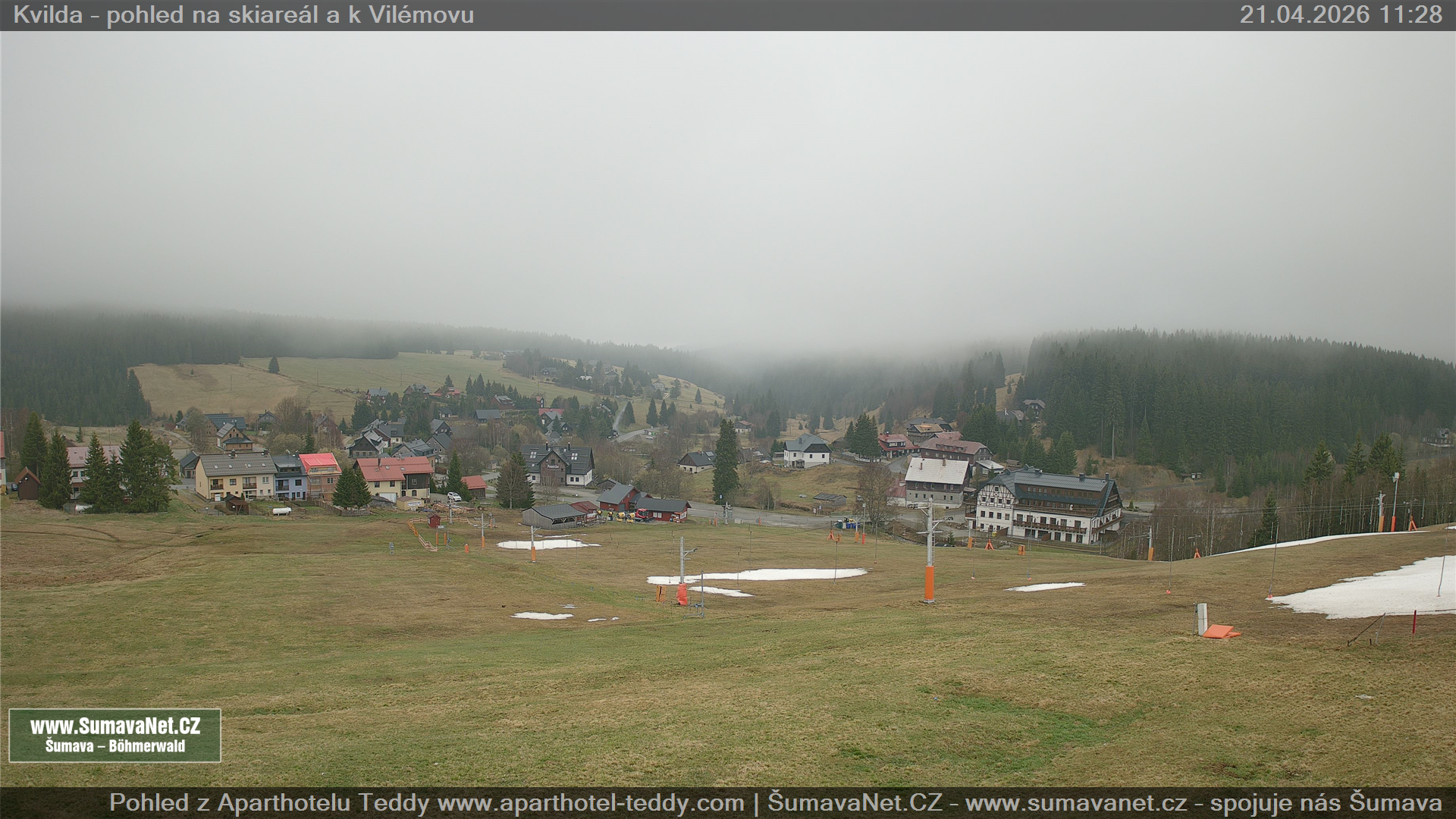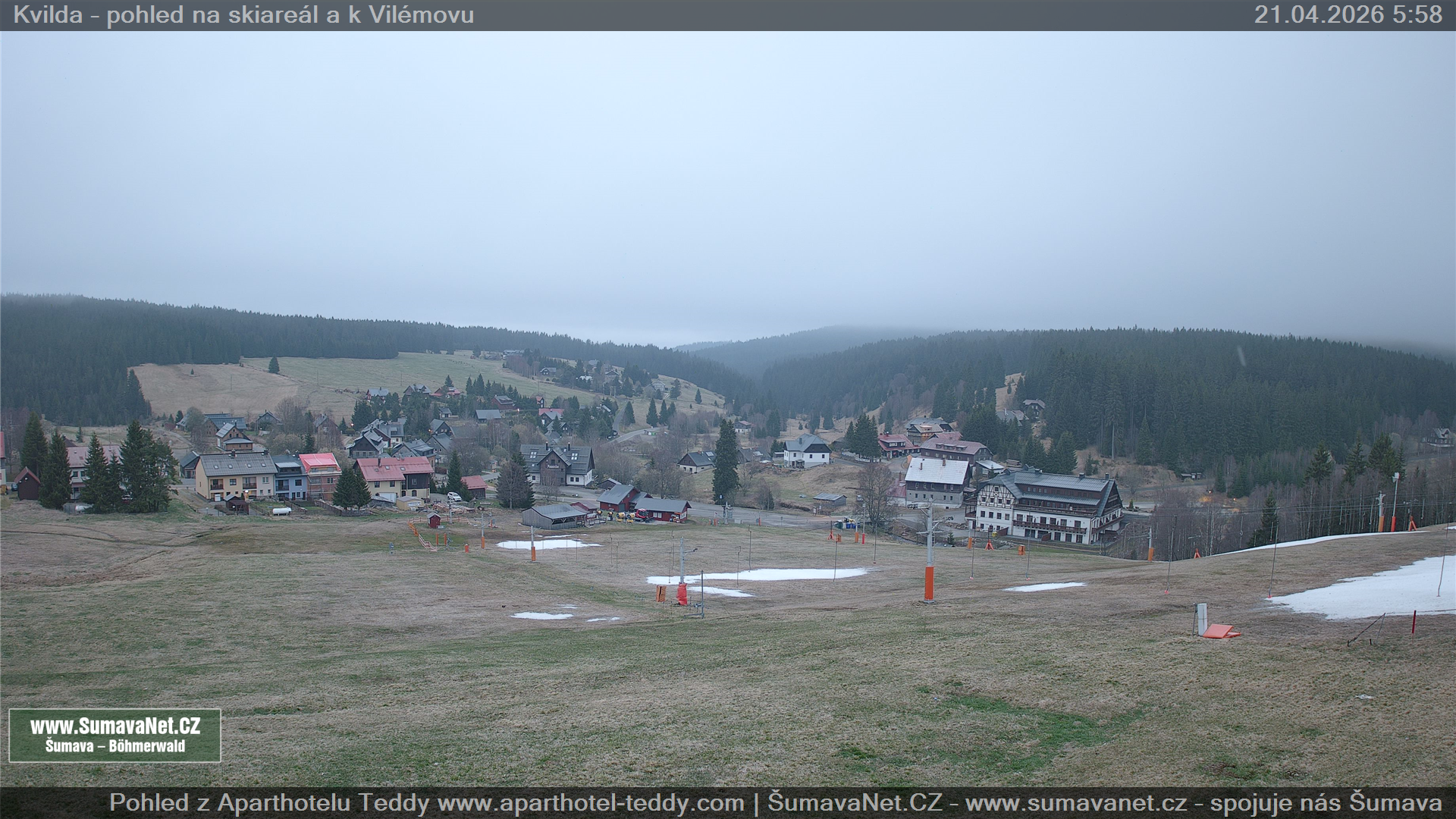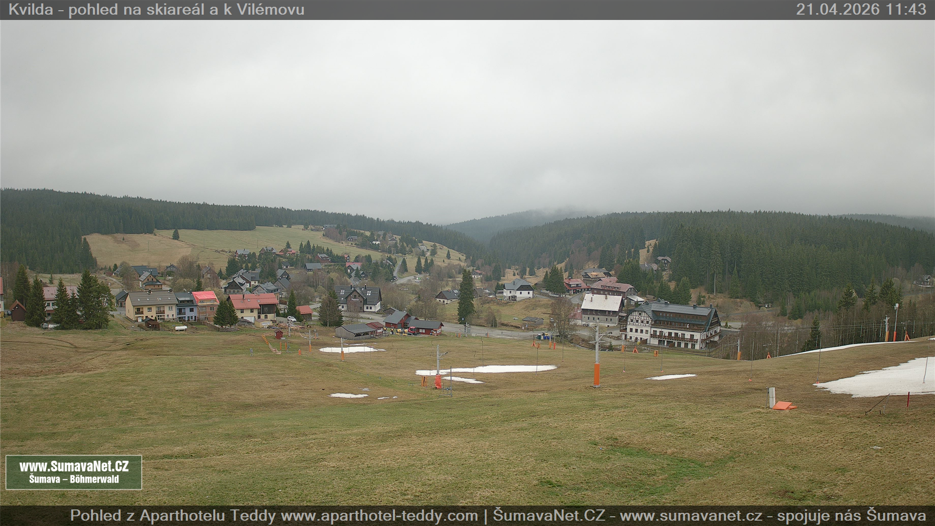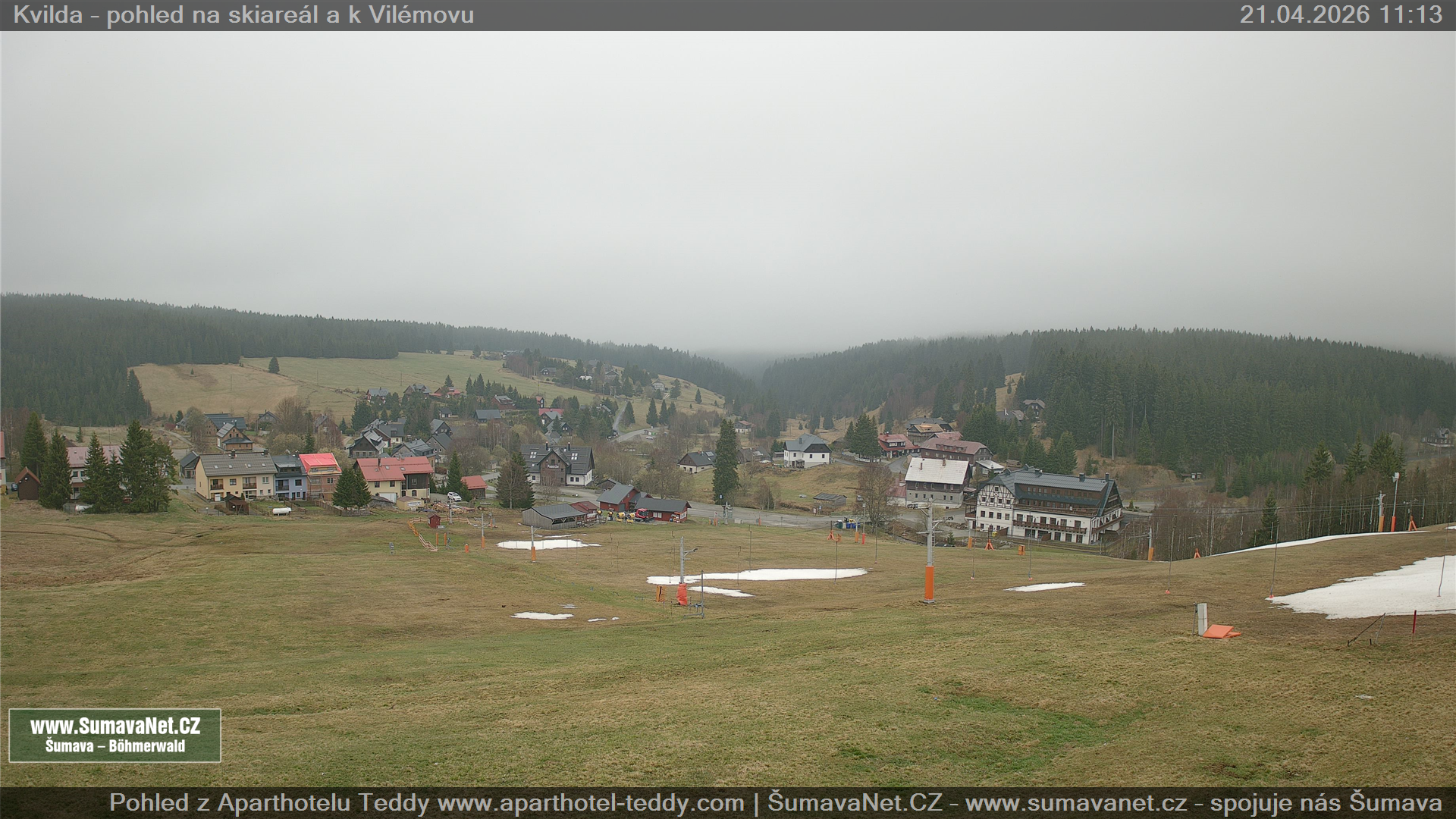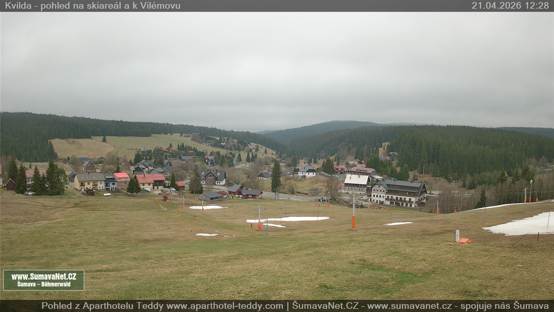 Kvilda - pohled od sjezdovky: 21.04.2026