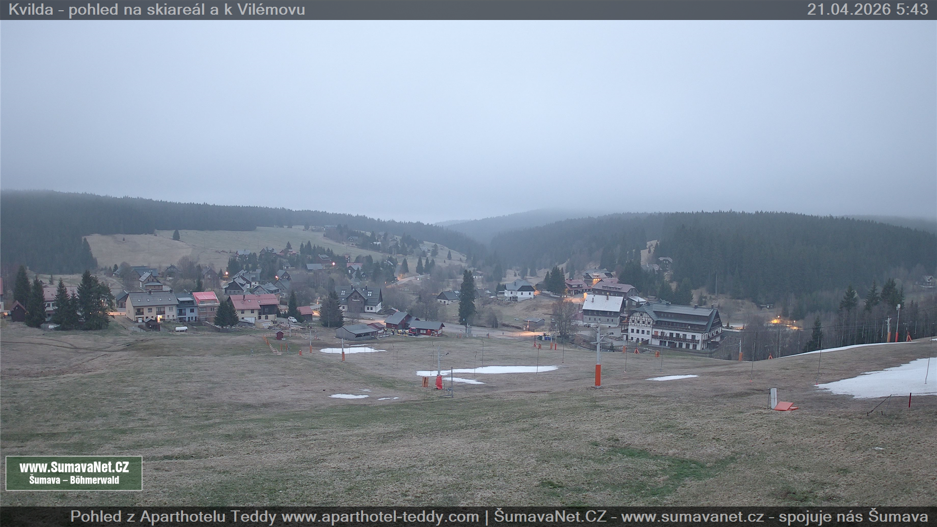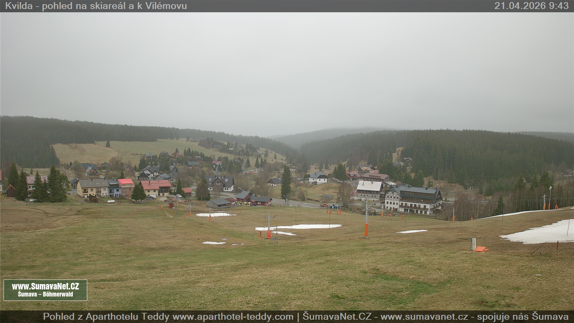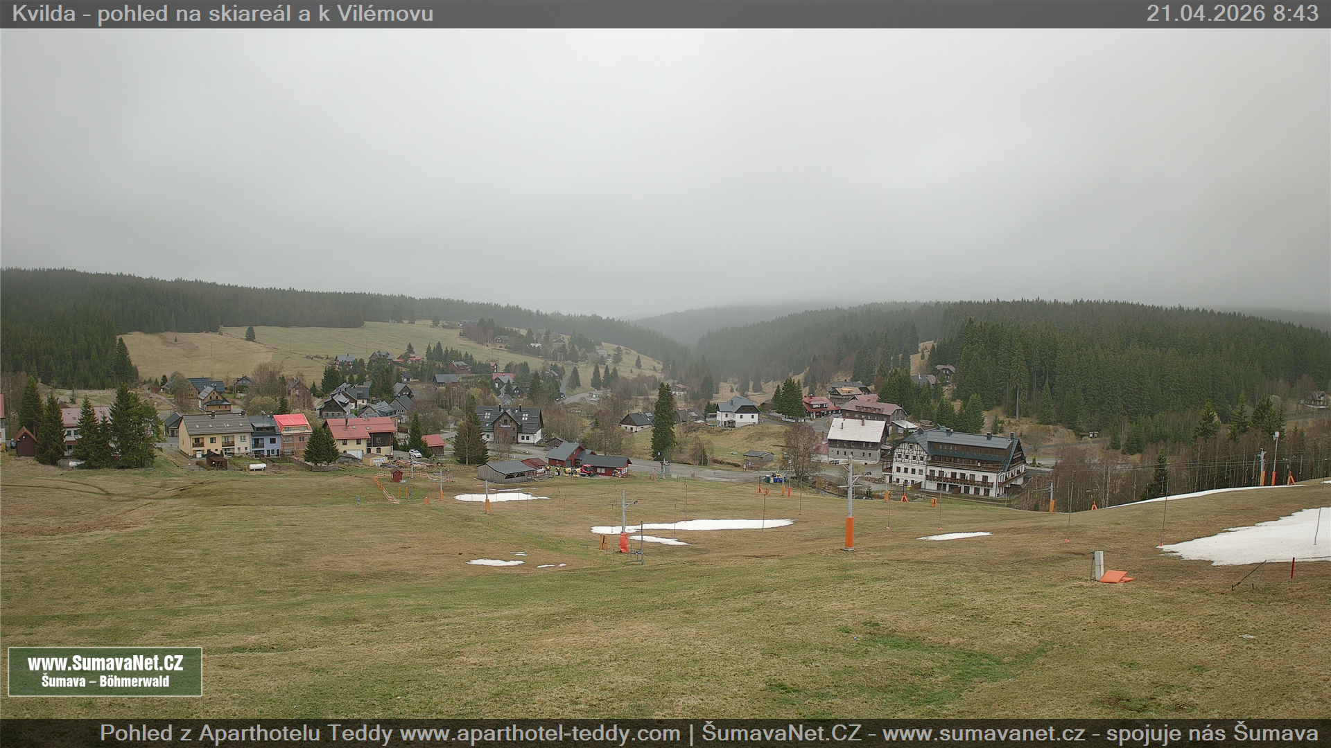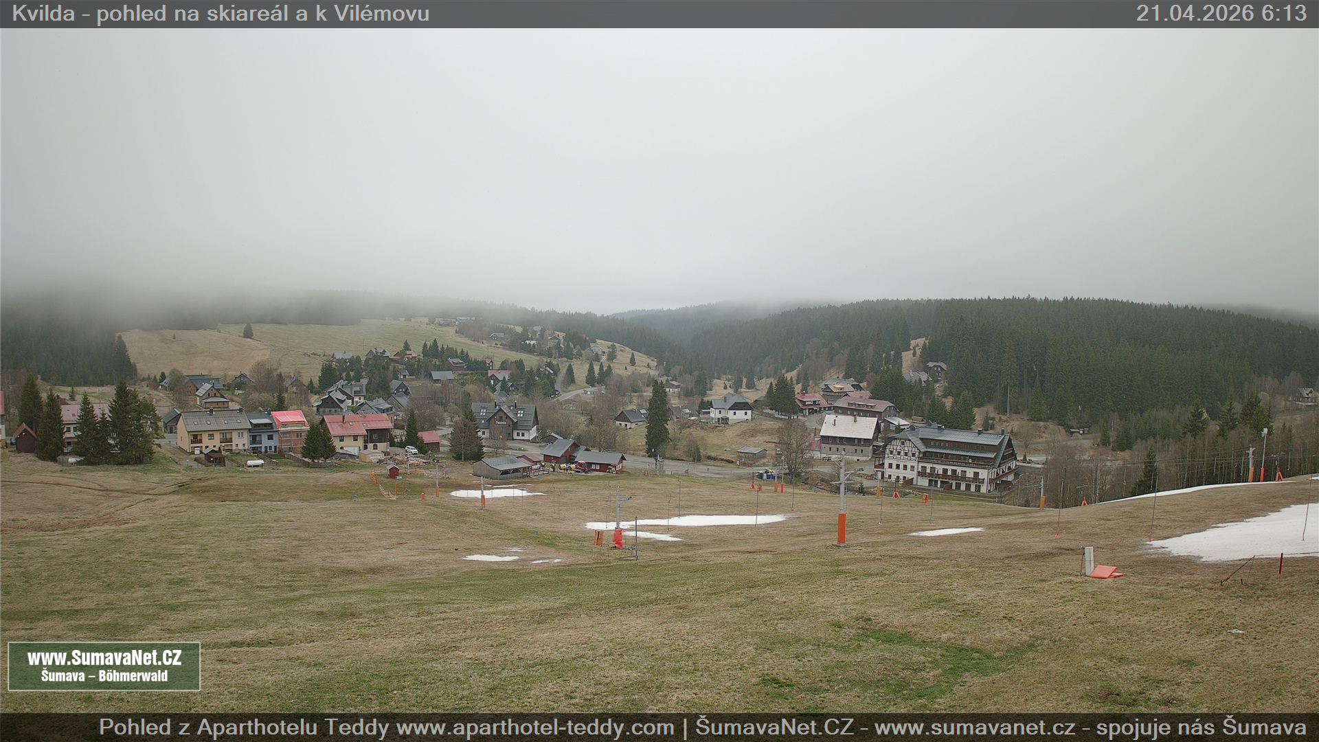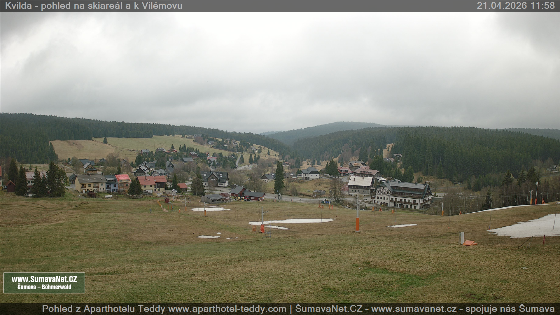 Kvilda - pohled od sjezdovky: 21.04.2026
