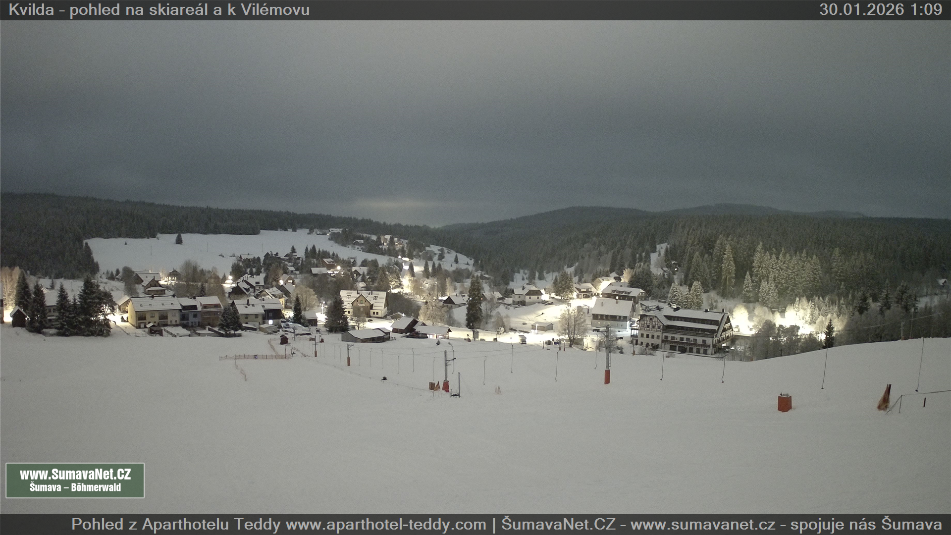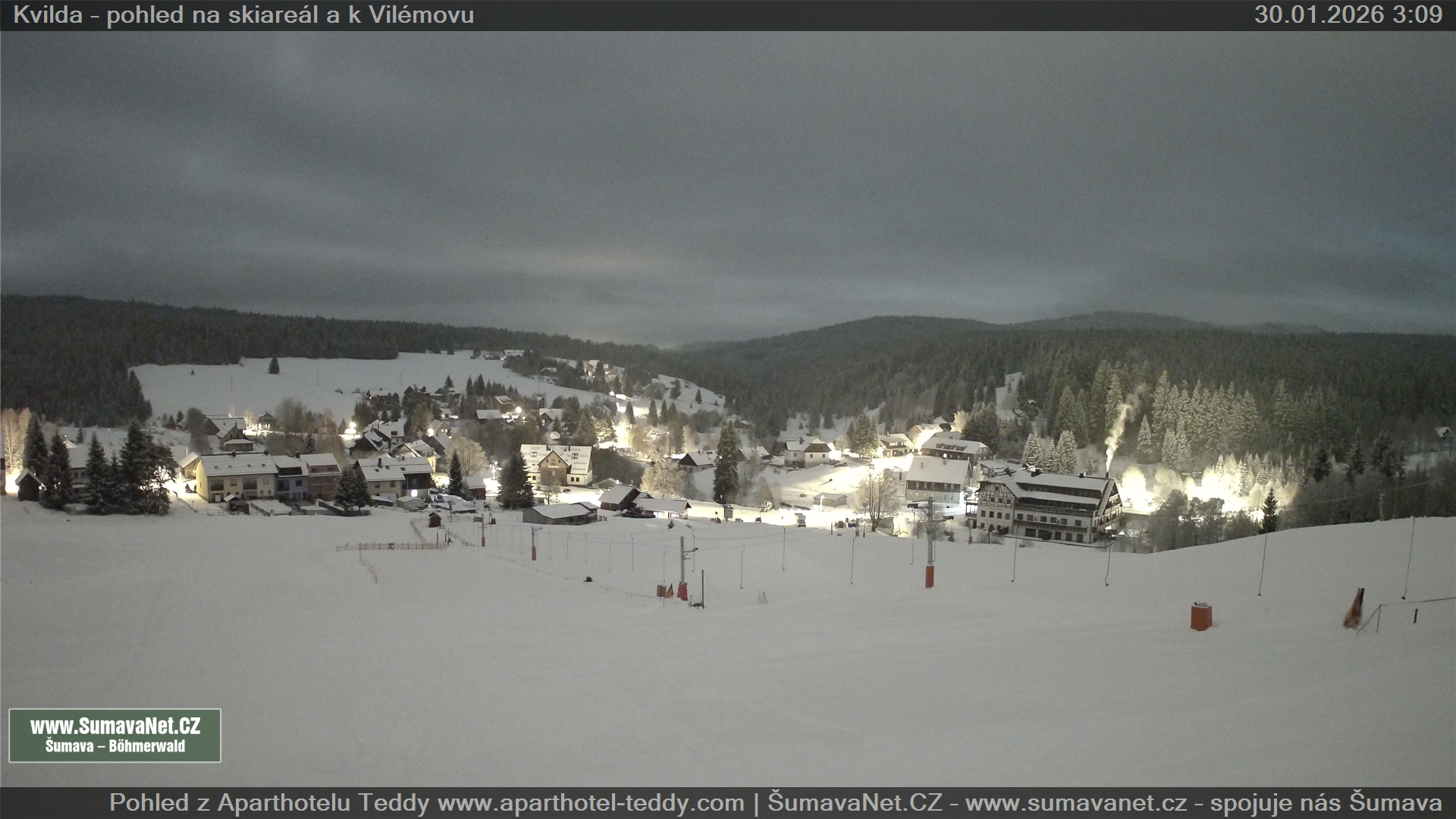 Kvilda - pohled od sjezdovky: 30.01.2026 – 30.01.2026