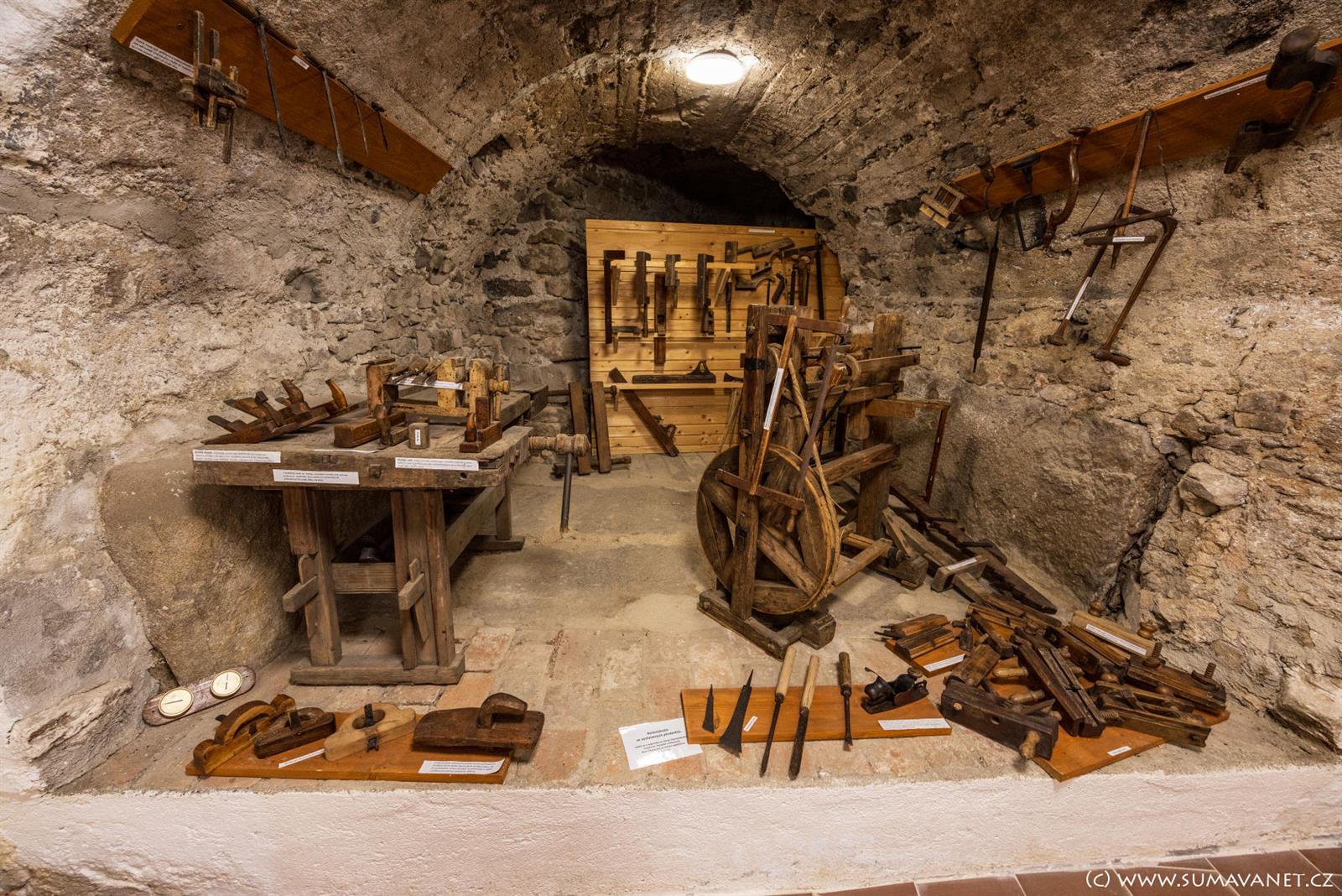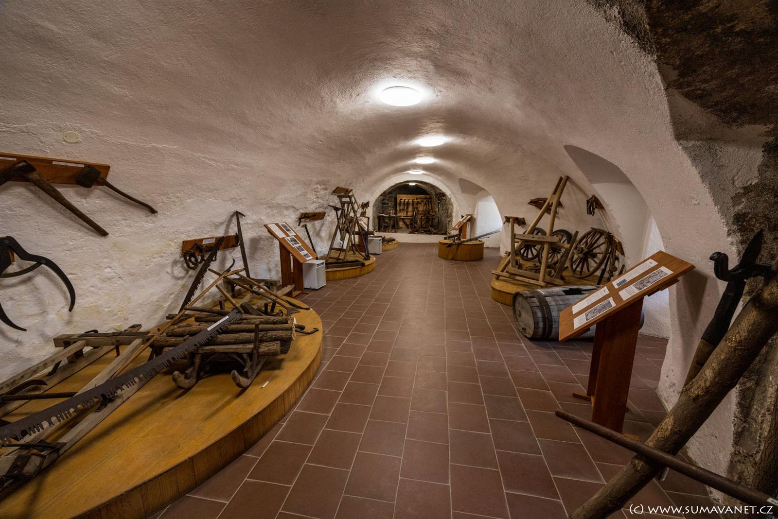 Ve zrestaurovaných sklepeních zámku je umístěna stálá expozice pošumavských lidových řemesel a historii zámku. V nedalekém infocentru lze domluvit prohlídku.