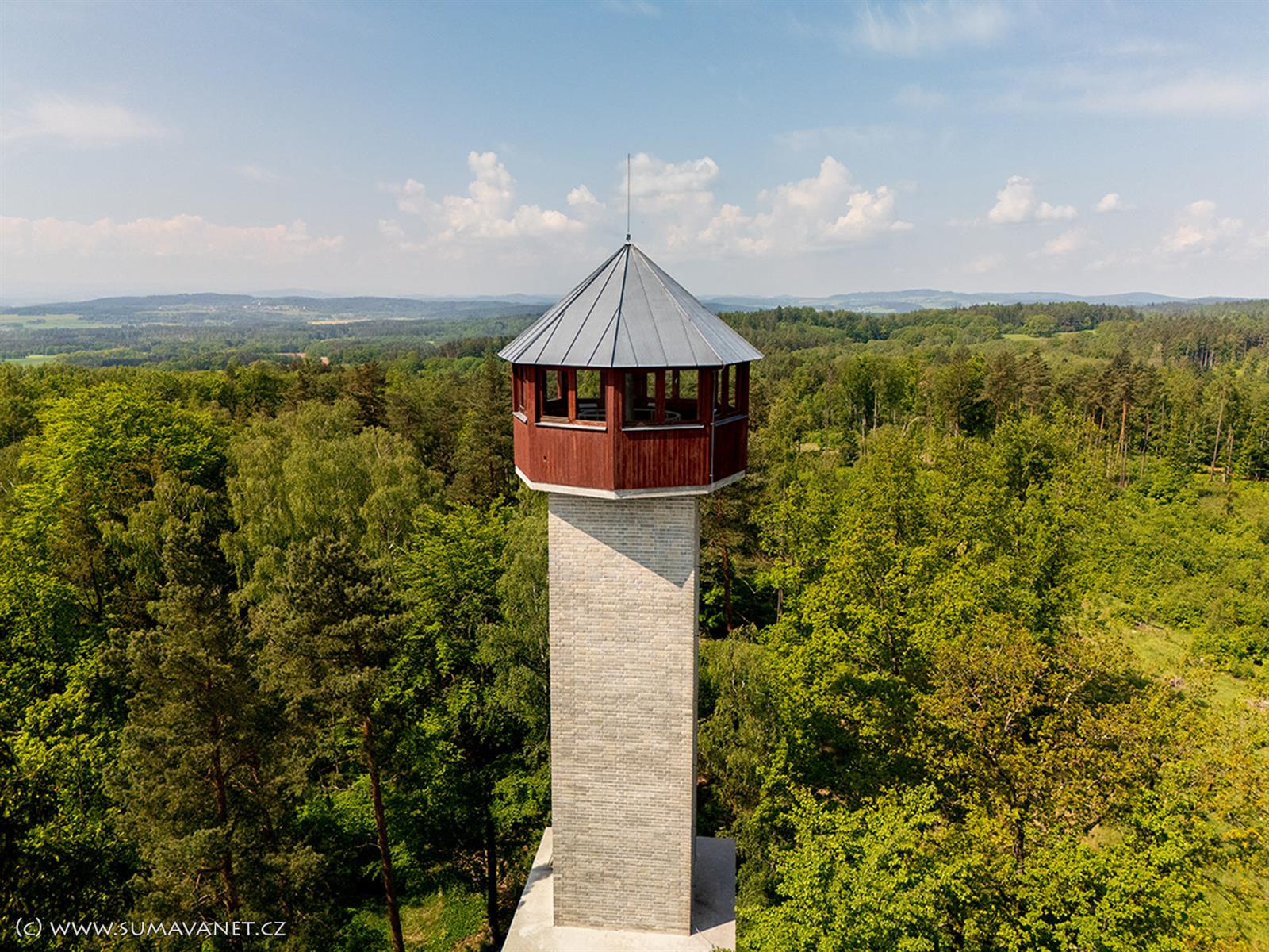Trasa vede k rozhledně s mottem “Prácheňsko jako na dlani”, ta je vysoká 31 metrů a lze z ní vidět celou Šumavu, od Českého lesa po Českokrumlovsko, dále Blatensko a Brdy.