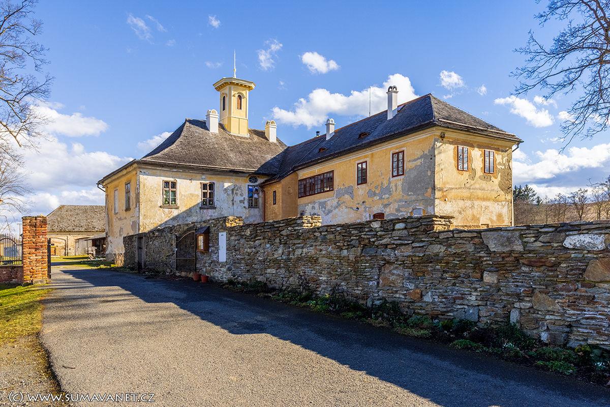 Původní tvrz ze 14. století byla ve století šestnáctém přestavena na renesanční zámek Janem Bohuchvalem z Hrádku. V 18. století byl zámek upraven v duchu barokním a poslední přístavby jsou z dob klasicismu.