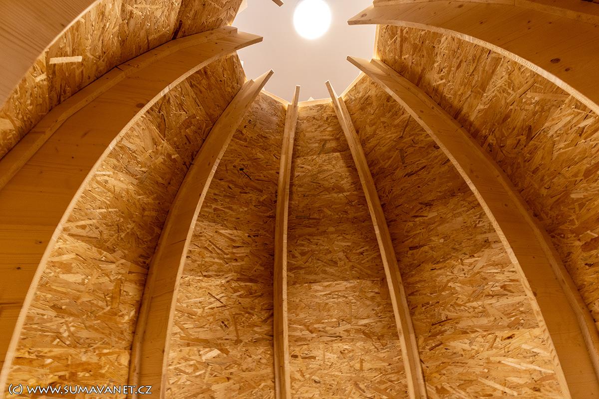 Vznikla v rámci projektu přeshraniční spolupráce Česká republika – Svobodný stát Bavorsko: 133 - Dřevařství na Šumavě a v Bavorském lese, Forst- und Holzwirtschaft im Böhmerwald und im Bayerischen Wald, libreto vytvořili pracovníci Západočeské univerzity v Plzni.Expozice objasňuje, proč a jak byl osud obce Dlouhá Ves za vlastnictví rodu Schwarzenbergů spojen s rozvojem dřevařství, jak „zlatý brouček“ ovlivnil život obyvatel Šumavy. Ukazuje také typické dřevařské činnosti a nářadí při něm používané, stejně jako se dotýká i každodenního života dřevařů – od typických dřeváků zvaných nejšle až po důchodový přídělový systém, který rod Schwarzenbergů pro své dřevaře vytvořil již v 19. století.