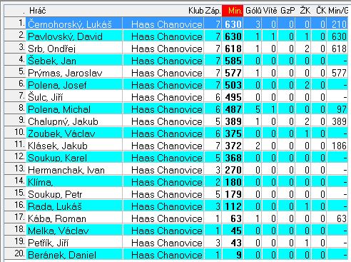Sestava Chanovice : Soukup Karel, Prýmas Jaroslav, Chalupný Jakub, Zoubek Václav /65" Klásek Jakub/, Klíma Tomáš, Srb Ondřej, Šebek Jan, Pavlovský David, Polena Michal, Polena Josef / 46" Šulc Jiří/, Černohorský Lukáš.