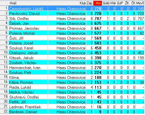 Statistika hráčů - 1.B třída