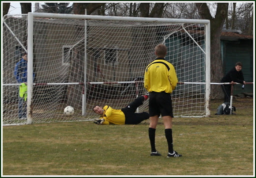 Již v 10.minutě se hosté dostali k naší brankové čáře na pravé straně, odtud přišel prudký balon po zemi do malého vápna. Brankář Kalaš jej pouze vyrazil před sebe. Tam se první objevil protihráč a prohrávali jsme 0:1. Do poločasu jsme kupili chybu za chybou a jen díky Kalašovi neprohrávali větším rozdílem. Ten dokonce chytil v 18.minutě i penaltu hostů .
