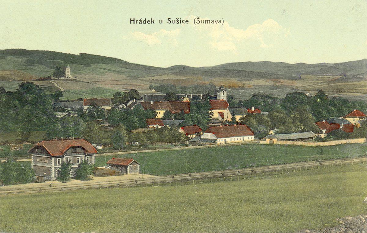 Hrádek leží v Plzeňském kraji, v okrese Klatovy, v předhůří Šumavy, v nadmořské výšce 470 - 820 m, v údolí říčky Ostružné, zhruba 4 km od města Sušice. Dominantou sídla je zámek, který se nachází uprostřed obce.