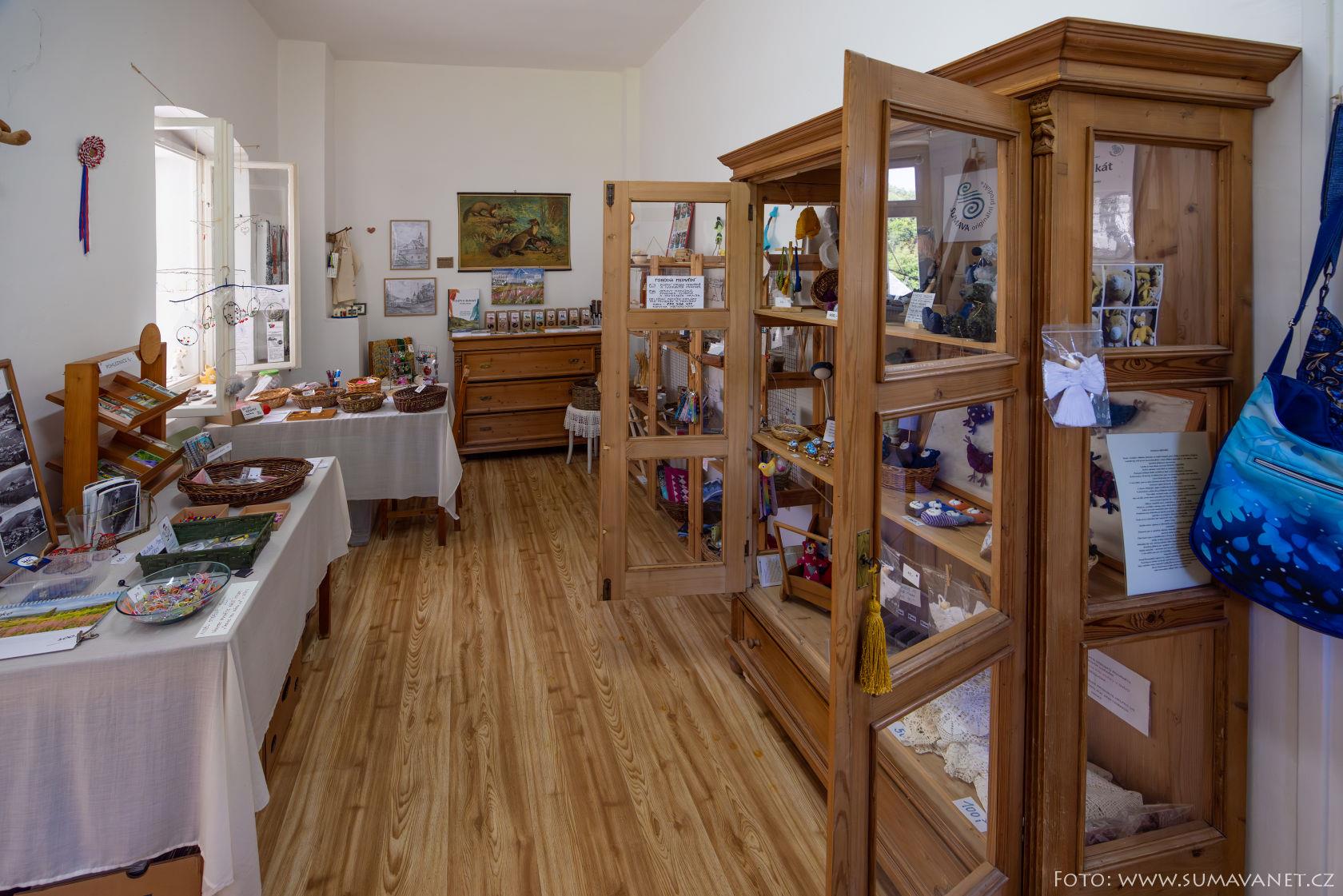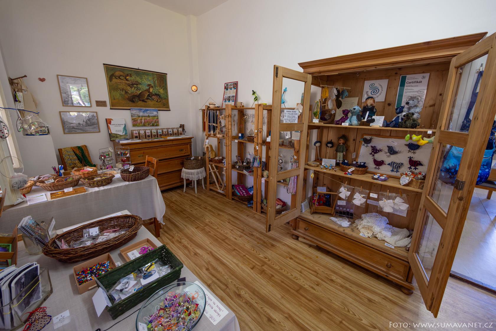 Turistické suvenýry a výrobky – v nabídce jsou turistické známky, vizitky, magnetky, mapy a pohlednice. Nechybí ani originální rukodělné výrobky z Rejštejna a okolí, některé oceněné značkou Šumava – originální produkt.