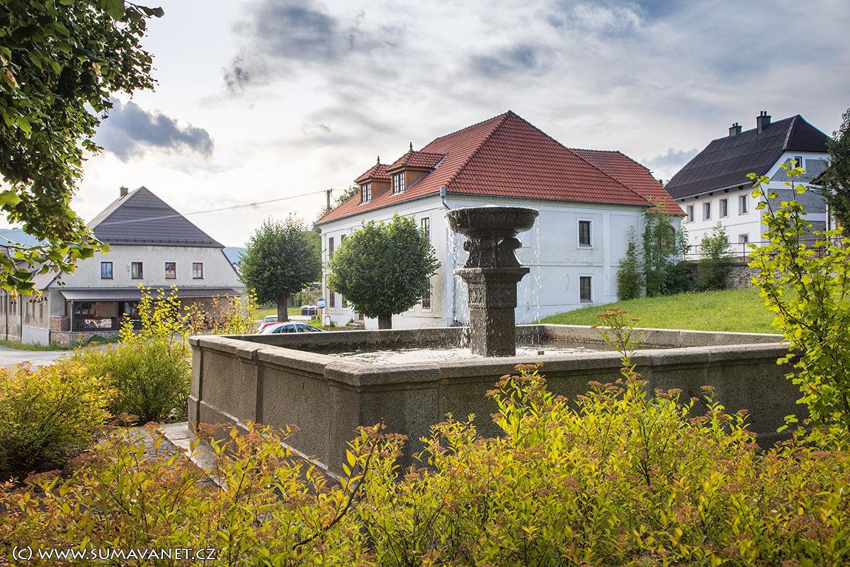 Kašna na návsi byla původně dřevěná a sloužila jako zdroj vody.
