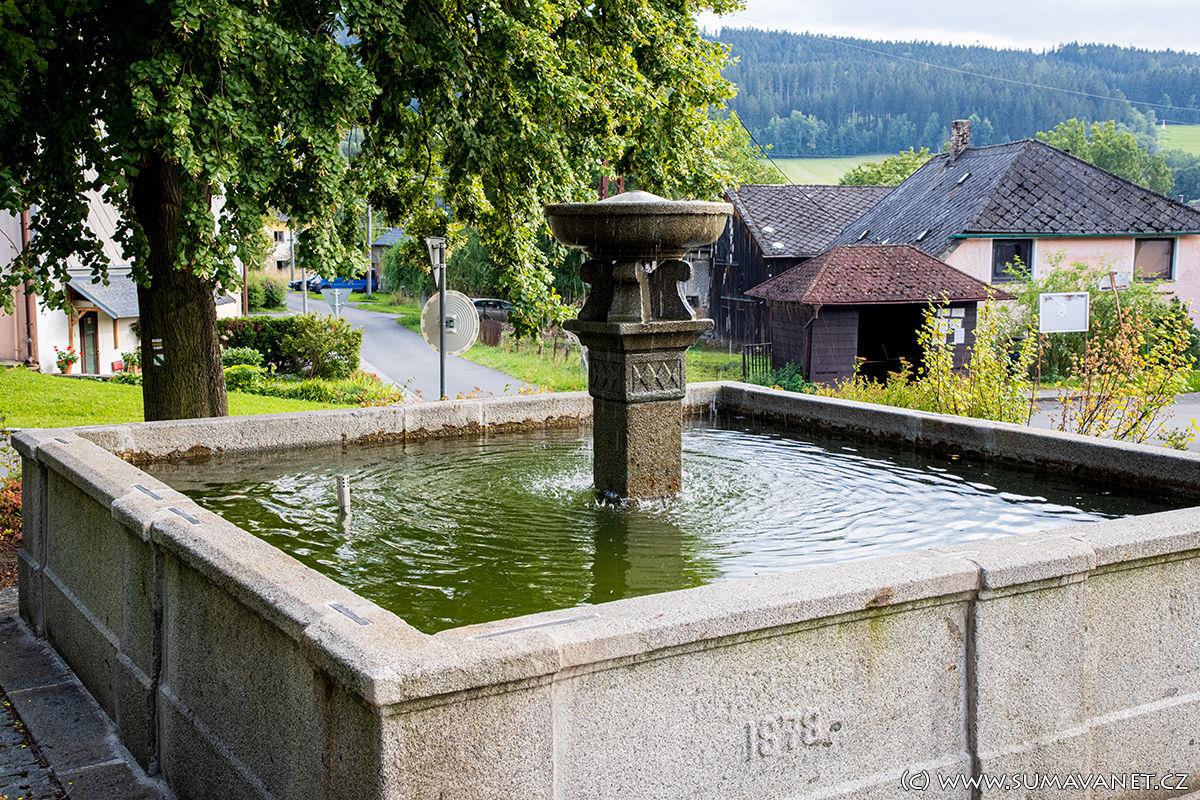 V roce 1878 byla vybudována kamenná kašna – ze světlé hrubozrnné žuly. V roce 1903 byla kašna buď rozšířena nebo opravena, jak udávají kamenné desky. Rozměry kašny jsou velkorysé 6 x 6 m, hloubka 1,2 m.