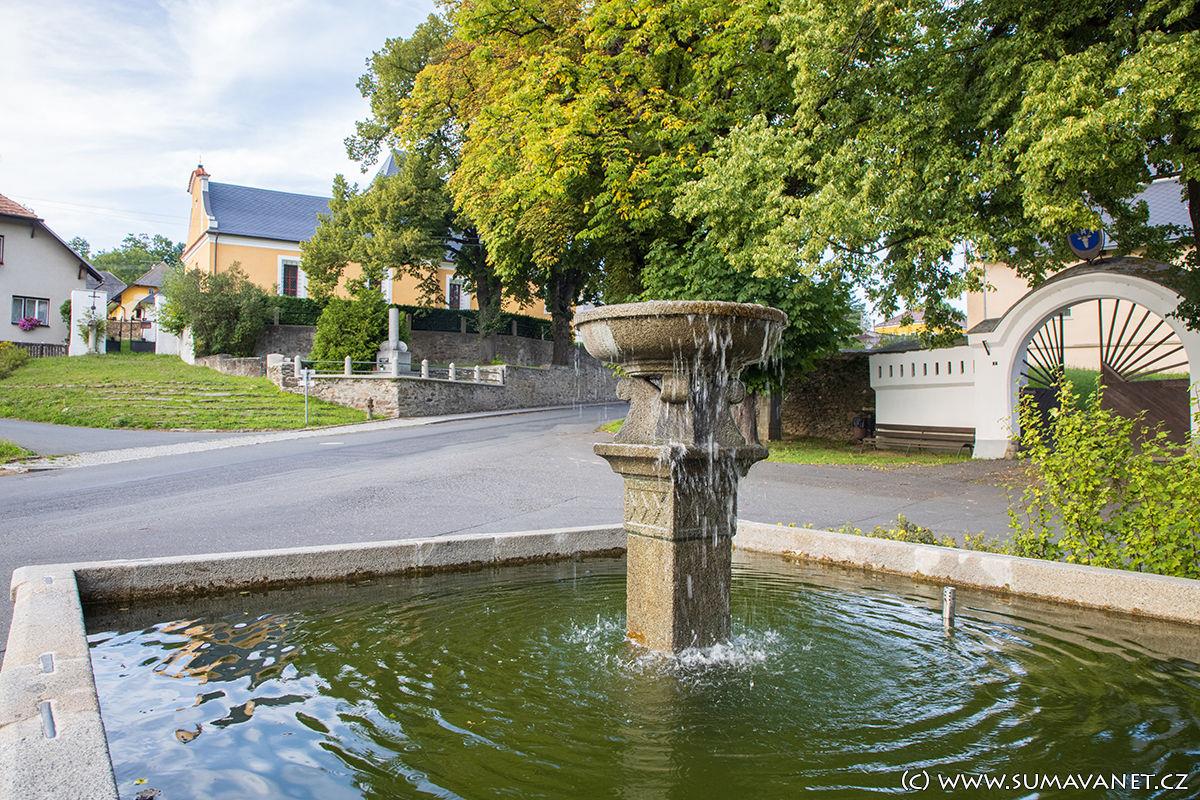 Kašna na návsi byla původně dřevěná a sloužila jako zdroj vody.