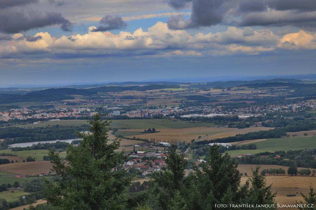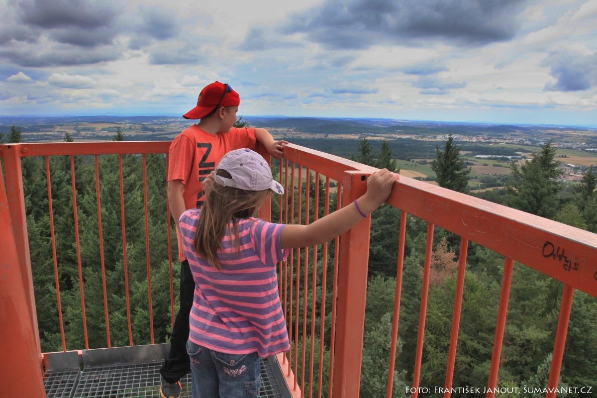 Odměnou za výstup je nádherný kruhový rozhled jak na oblast Šumavy a Pošumaví, tak i do vnitrozemí. Jižním směrem na bližším horizontu dominuje Boubínská hornatina (Boubín, Solovec, Malý a Velký Bobík). Před tímto hřebenem je vidět Mařský vrch, dále na západ Javorník, Žďánov, Kašperk a Svatobor. Při dobré viditelnosti na vzdálenějším horizontu Plesná, Polom, Žďánidla a dokonce i Velký Javor. Na jihovýchodě se rýsuje Libín, Knížecí Stolec a Kleť a lze dohlédnout až k Novohradským horám. Na východě v Budějovické pánvi vystupují typicky dýmající chladící věže JE Temelín. Severovýchodním směrem ve vnitrozemí se rozkládá Písecko a Strakonicko, severně pak Pootaví, Blatensko a za nimi Brdy s nejvyšší horou Třemšín. Nejblíže pod rozhlednou na severovýchod leží Libětice a Sousedovice, za nimi pak Strakonice. Z rozhledny jsou také vidět kopce, na nichž jsou energetické body, s nimiž je podle psychotroniků Kbílský dolmen liniově propojen.