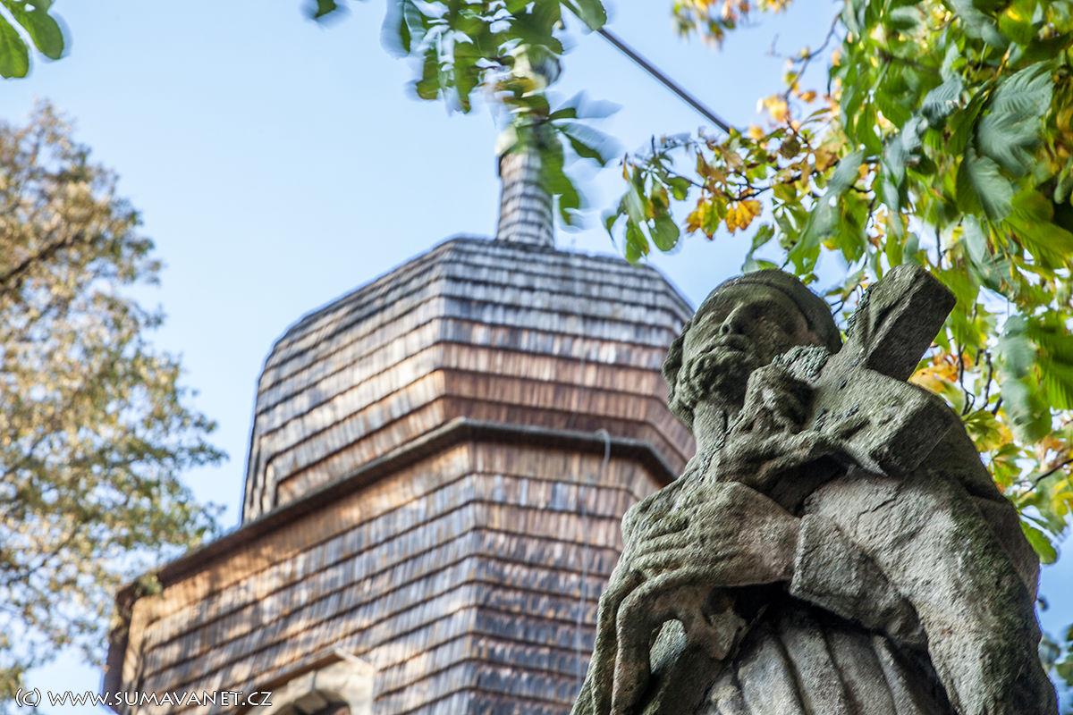 Před kostelem stojí 300 let stará lípa malolistá.