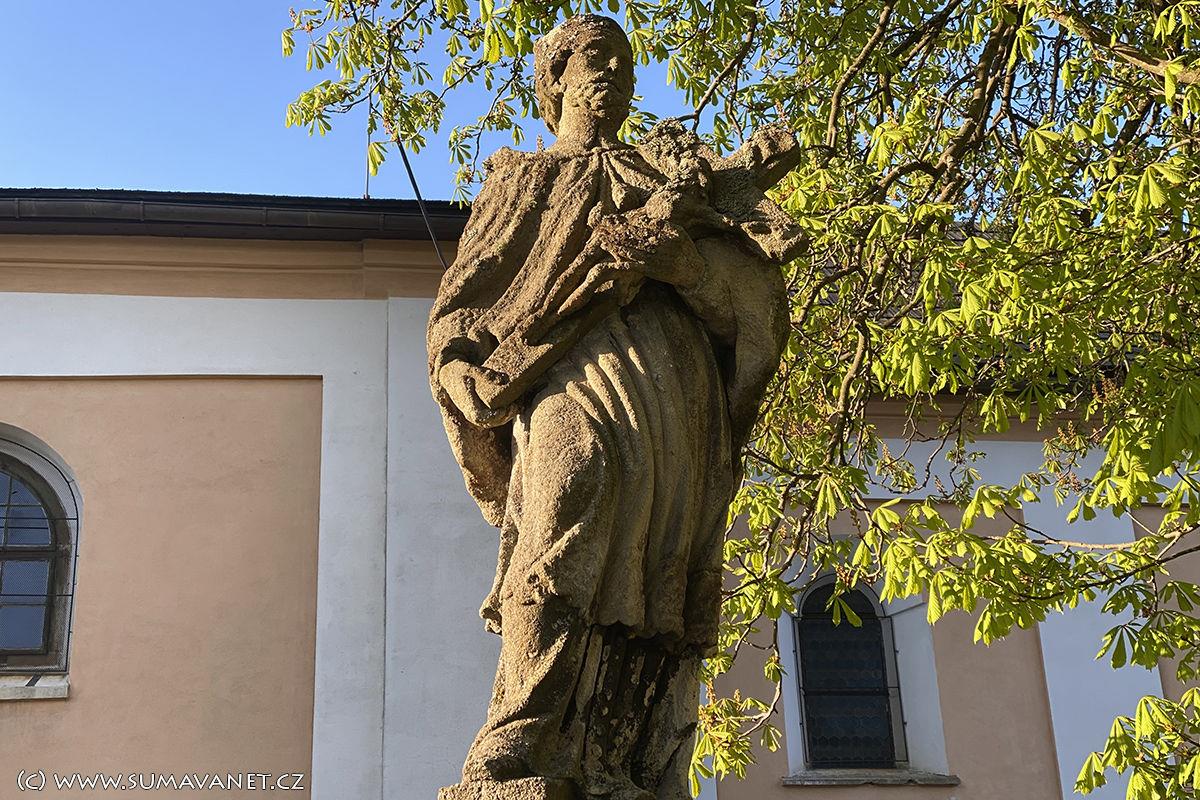 Prostředí dotváří na hranolovém soklu stojící socha sv. Jana Nepomuckého v životní
