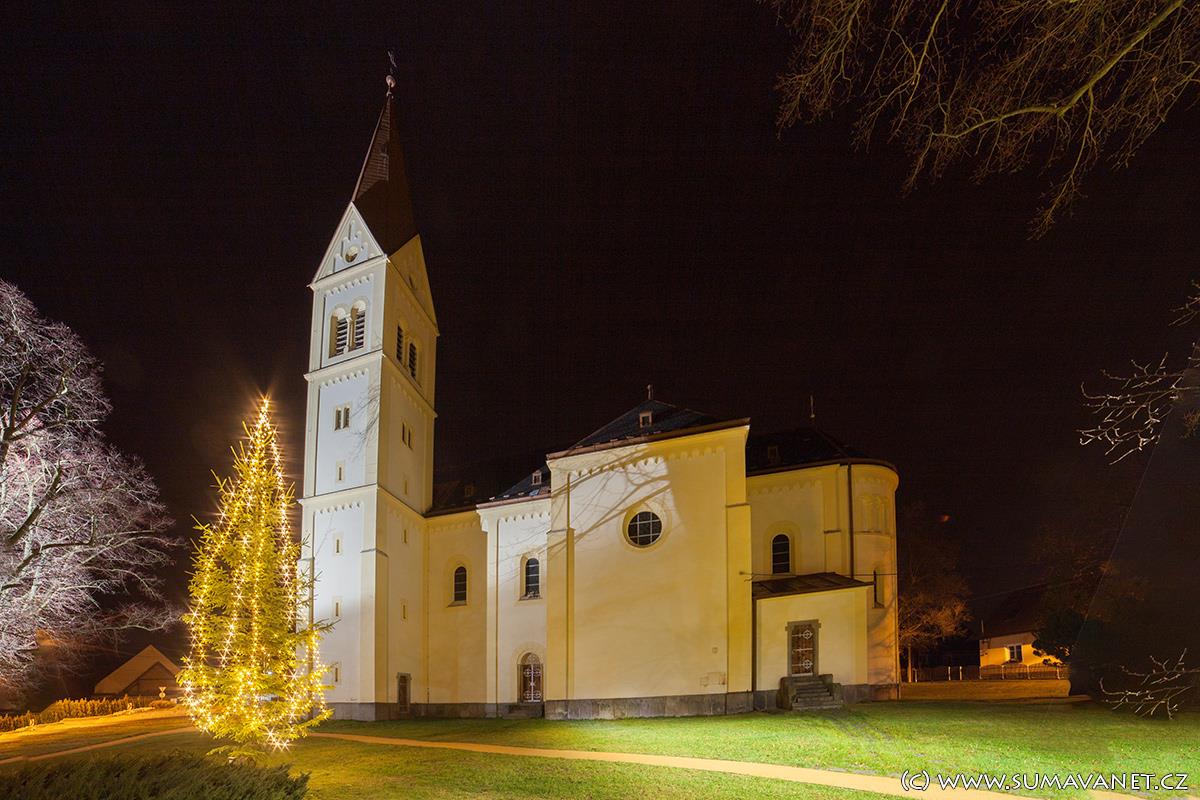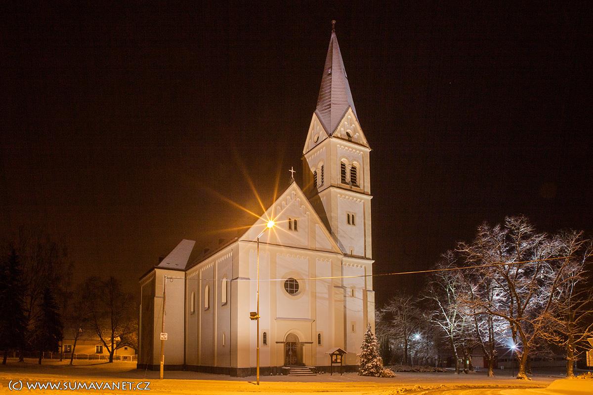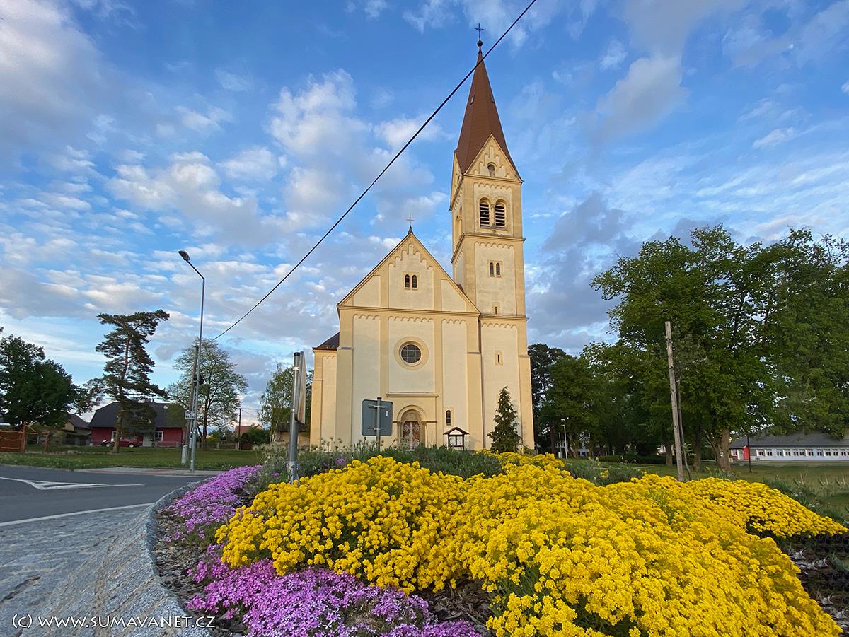 Kostel byl postaven na náměstí v samém centru obce v letech 1899 – 1901 a je tak jedním z nejmladších kostelů v okrese Klatovy. Původní kostel Sv. Anny již kapacitně nevyhovoval potřebám věřících ale trvalo sedm let než mohl být do pravého rohu budoucí věže položen 11. května 1899 posvěcený základní kámen a stavba za 75.000 zlatých zahájena. Tato na svou dobu poměrně vysoká částka ale nestačila na pořízení vnitřního vybavení a proto musela být mezi rodáky a místními občany udělána sbírka, která vynesla částku 1251 zlatých. Byl vybrán řezbář Jan Procházka z Příbrami, který zhotovil hlavní oltář se sochou Sv. Václava, opravil dva postranní oltáře s obrazy Sv. Tadeáše a Panny Marie Bolestné( kopie sušického klášterního obrazu), křtitelnici, kazatelnu a křížovou cestu. Spolu s tímto mobiliářem byly do nového kostela přeneseny i varhany z kostela Sv. Anny ale v roce 1906 byly pořízeny nové od firmy Jana Tučka z Kutné Hory.