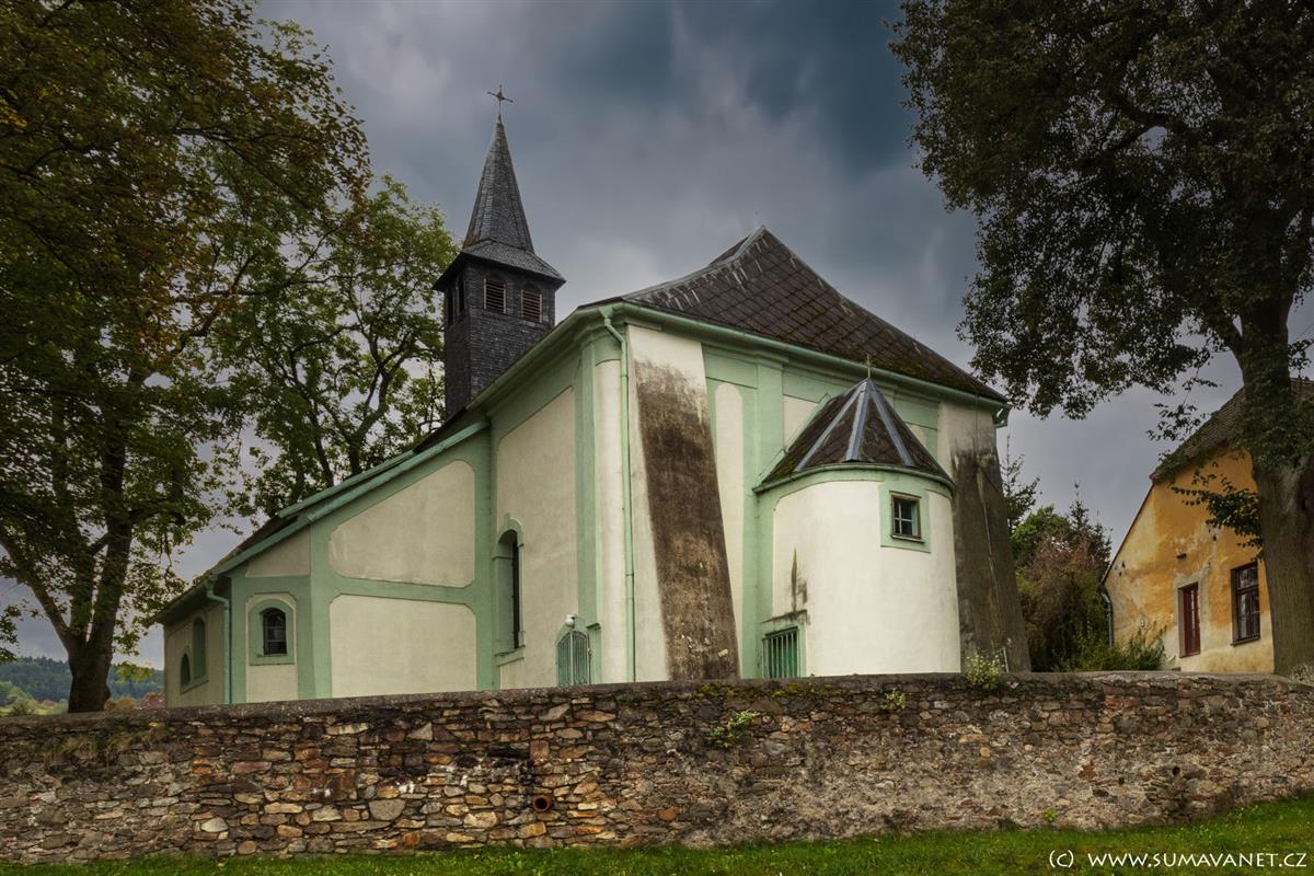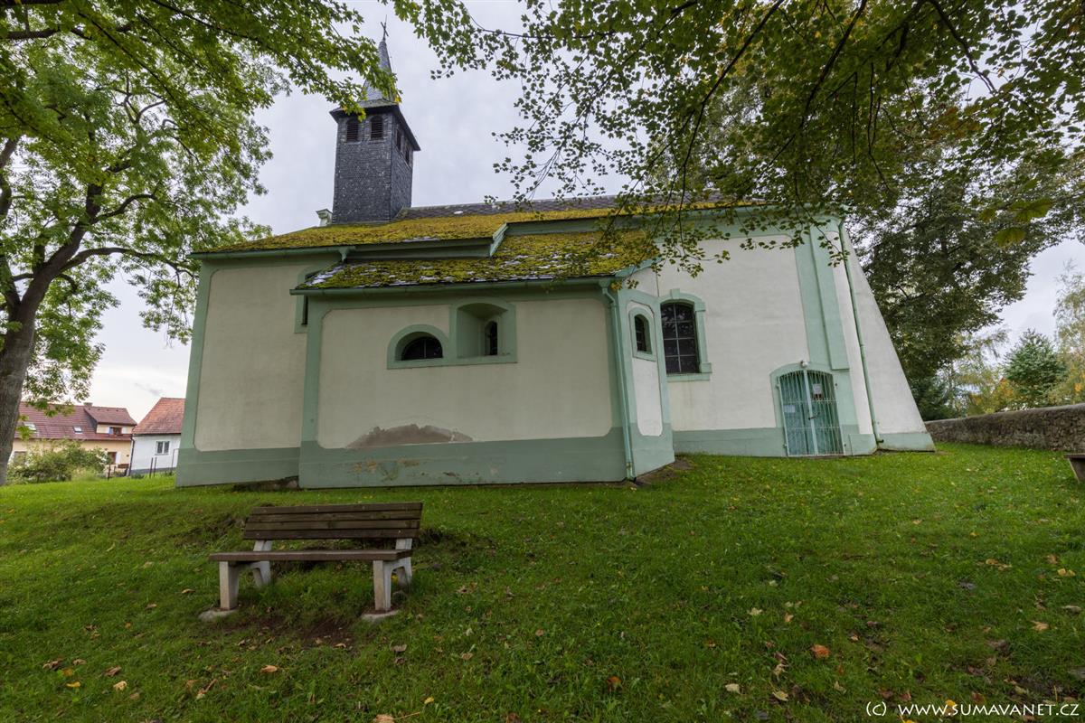 Kostel byl dříve obklopen hřbitovem. Nyní jej obklopuje několik chráněných stromů. V blízkosti kostela stojí pomník padlým v 1. světové válce.
