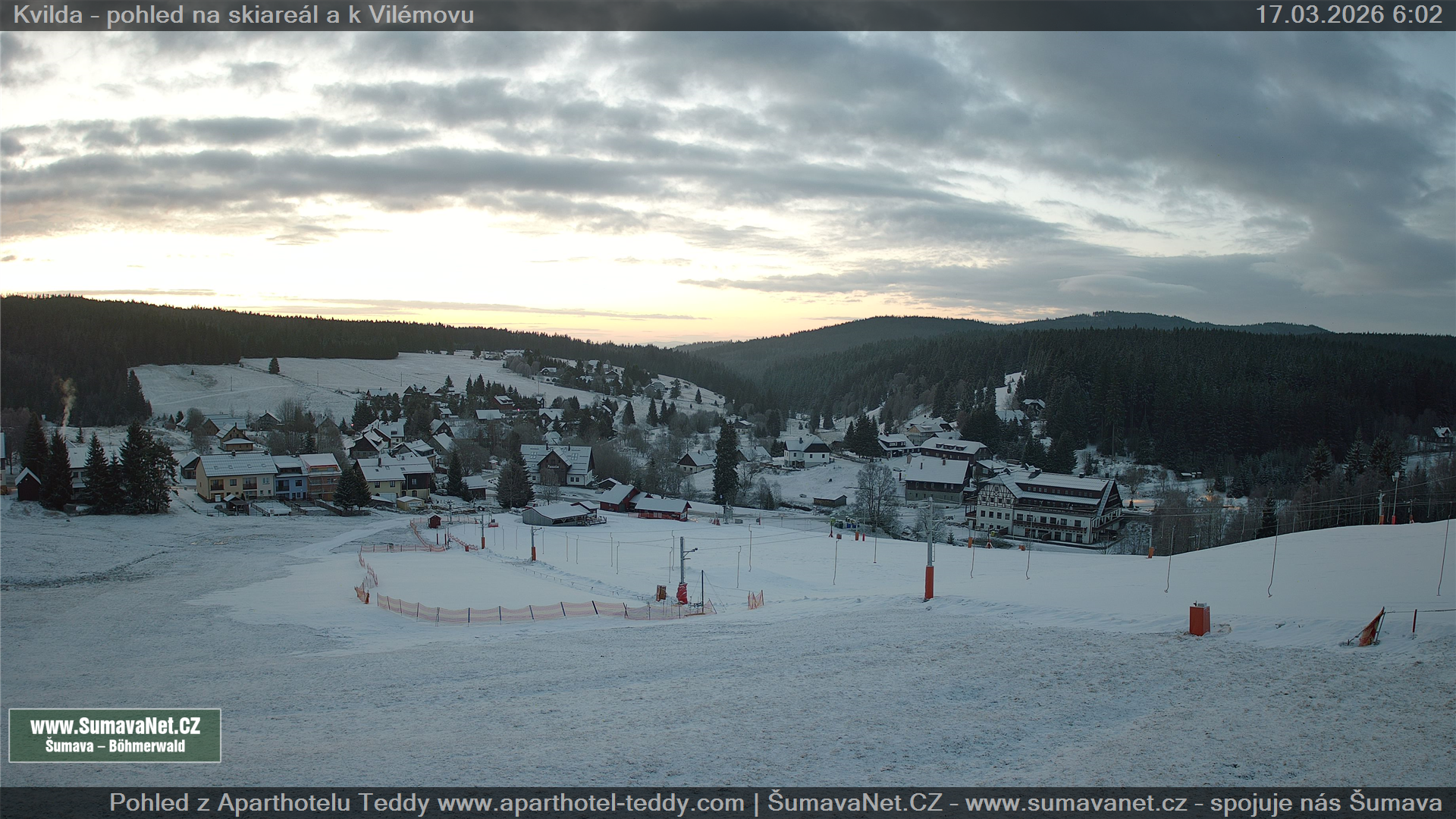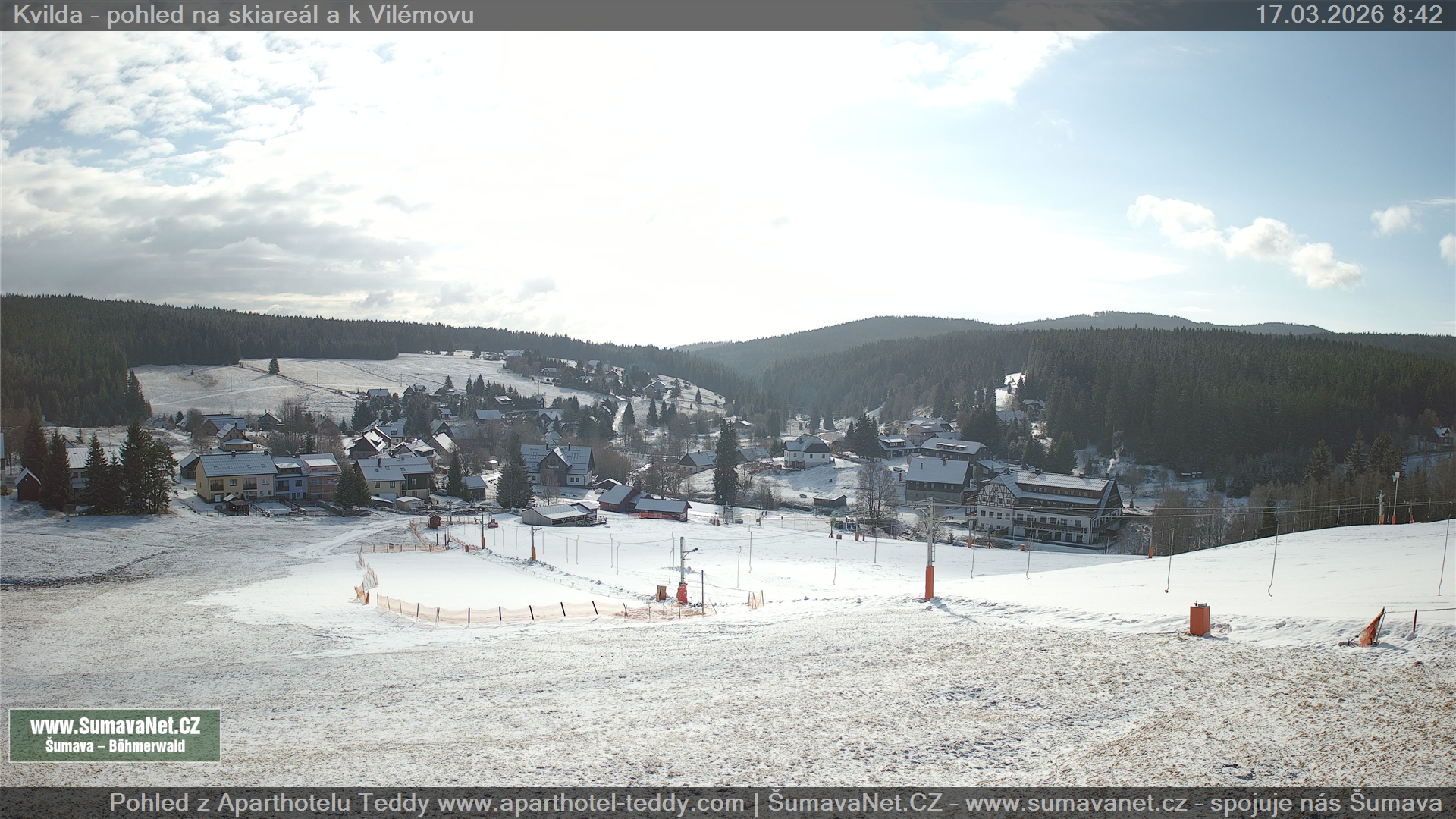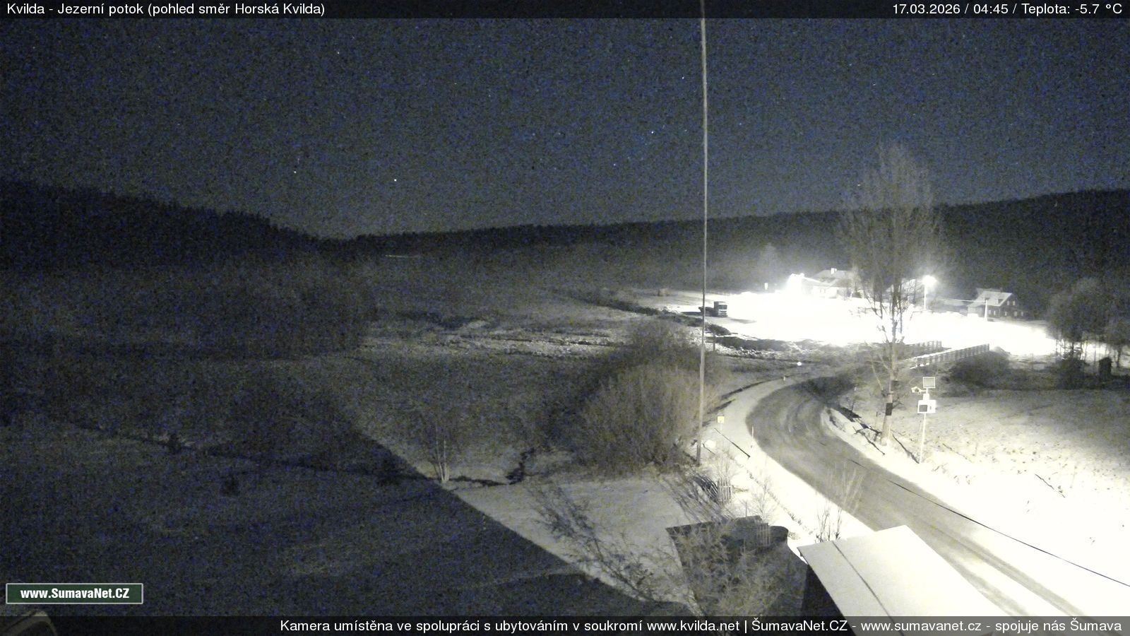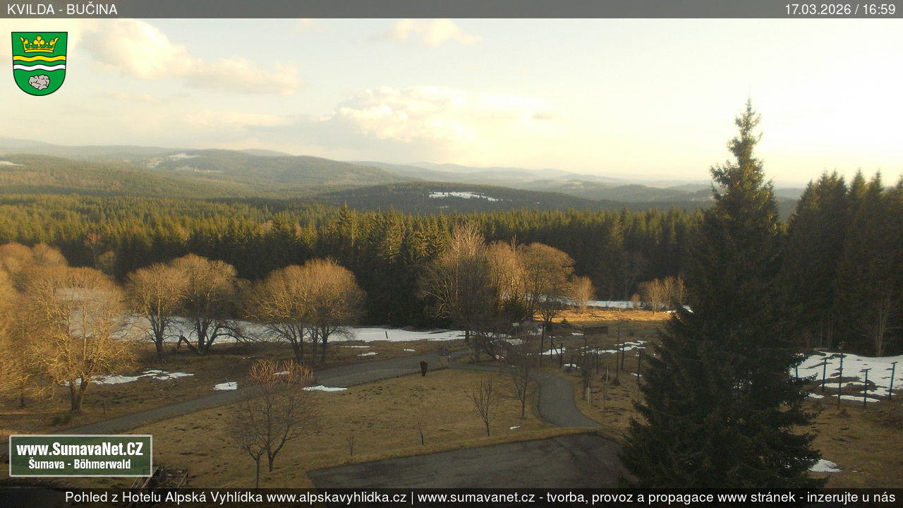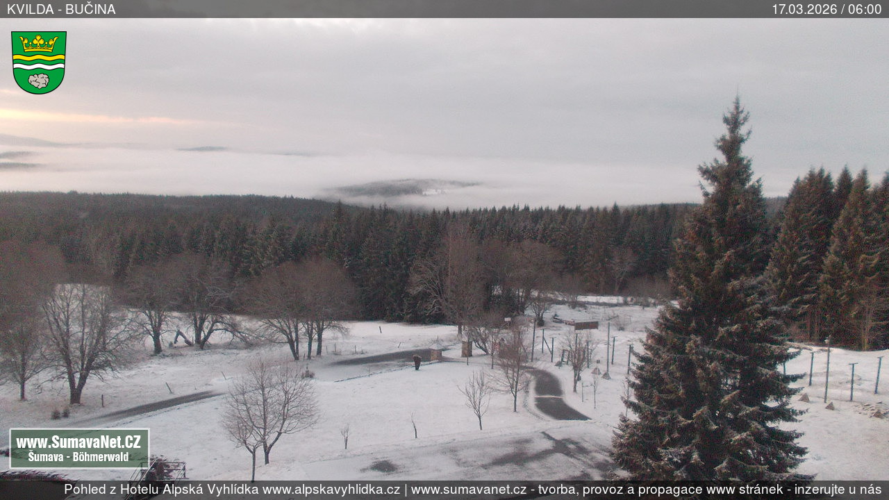 Page contentWebCamsKvildaBig Image17.03.2026 0:24:13Select time: Archive: Today 1 day 2 days Week Month 100 days Year Provozováno Informačním serverem ŠumavaNet.CZ ŠumavaNet.CZ & Aparthotelem TeddyKvilda - Jezerní potokBig Image17.03.2026 0:17:08Select time: Archive: Today 1 day 2 days Week Month 100 days Year Kvilda - centrum17.03.2026 0:24:10BučinaBig Image17.03.2026 0:22:11Select time: Archive: Today 1 day 2 days Week Month 100 days Year Další webkamery Tyto dvě kamery Vám přinášíme ve spolupráci se sumava.eu Refresh page