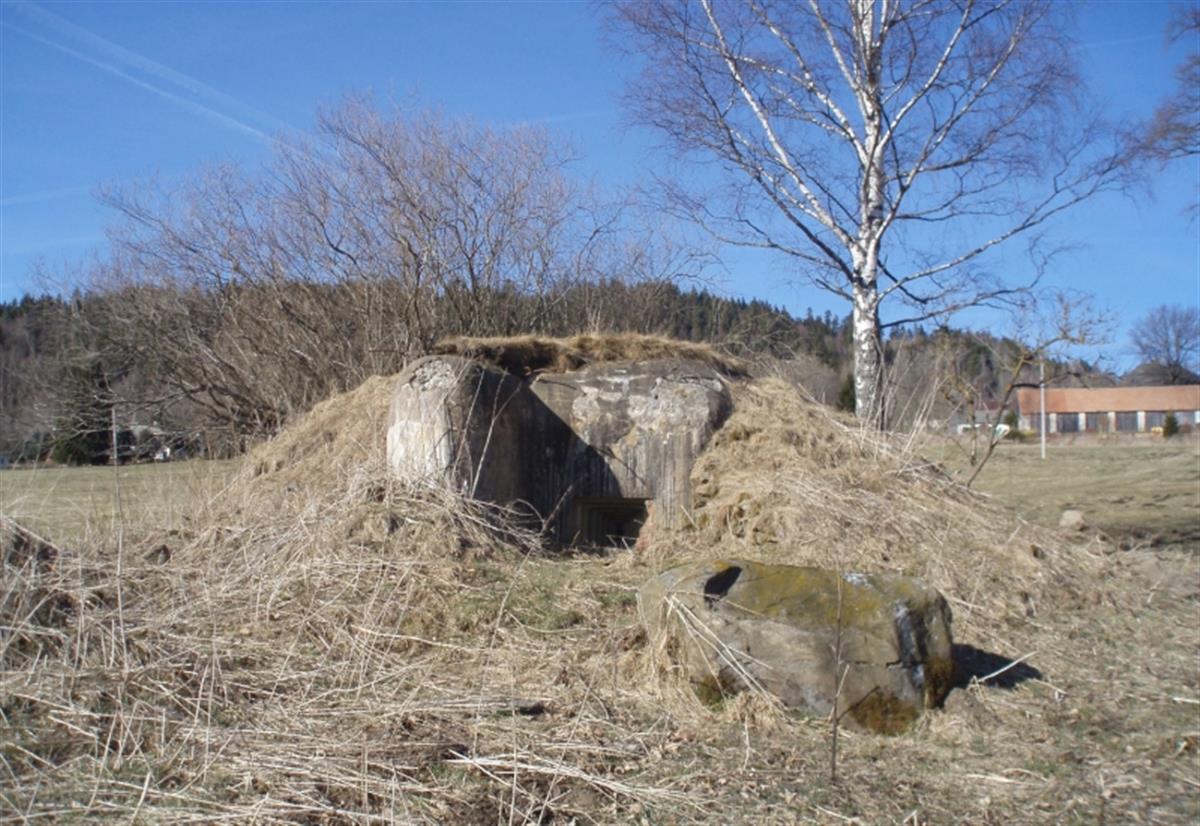 Pevnůstky částečně zasypané či zarostlé křovím zůstaly v krajině jako němá připomínka 2. světové války.