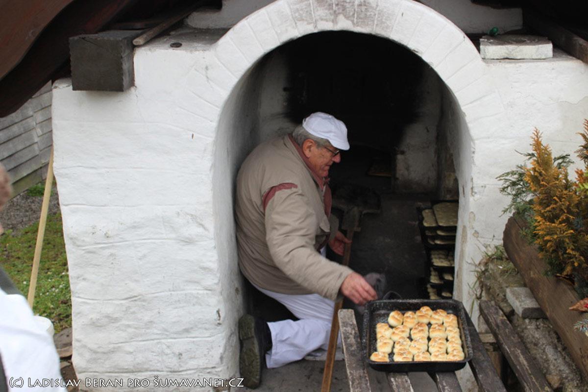 vytažení to kolem pece voní čerstvým pečivem, které se rozdává na