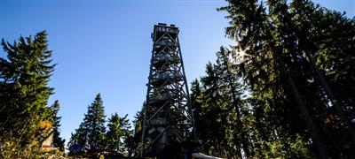 Dřevěná rozhledna vysoká 21 metrů umístěná na vrcholu Boubína.