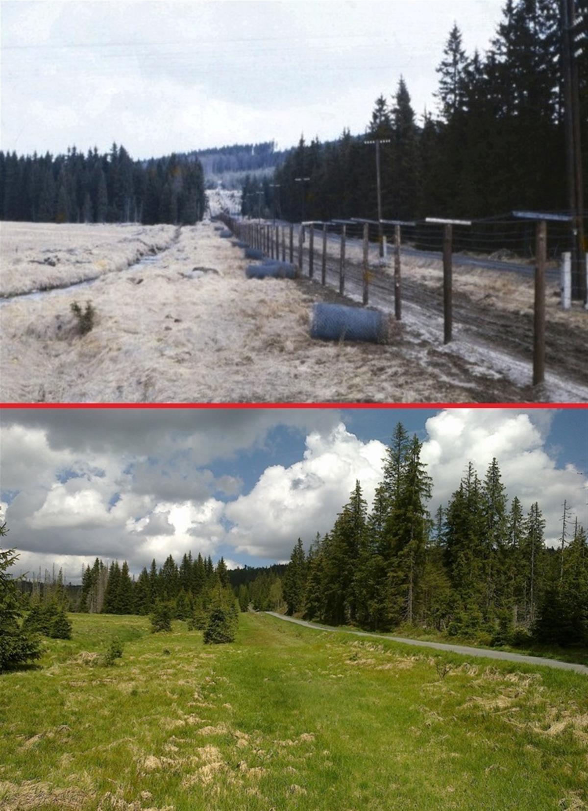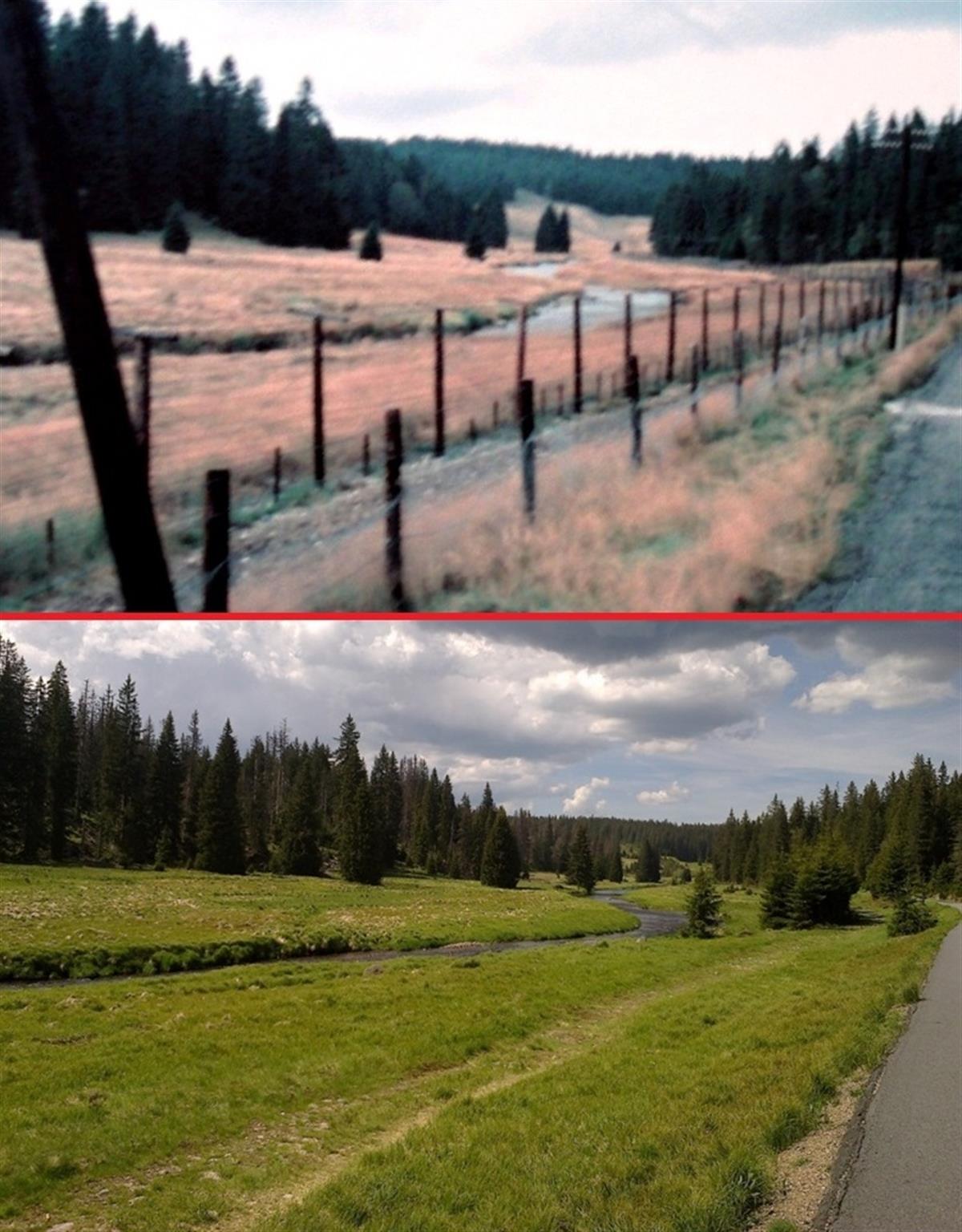 Pojďte se v několika momentech podívat na přelom 80. a 90. let. Snímky k porovnání v tomto časovém období vznikly v tomto roce a zavedou nás do kraje okolo Modravy. Zde byly drátěné zátarasy odstraněny v dubnu roku 1990.