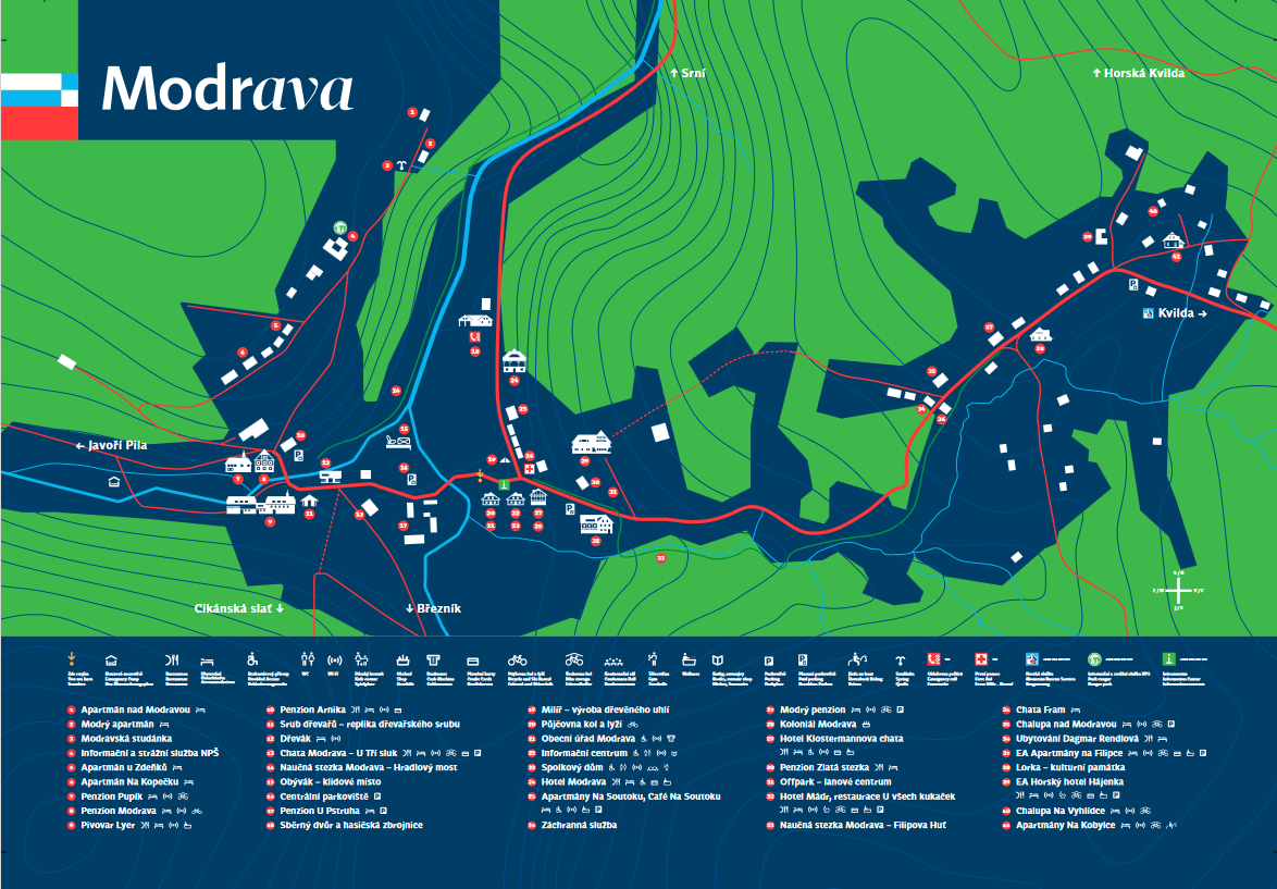 Obsah stránkyModrava – orientační plánOrientační plán obce Podrobný plán ve formátu pdf… Doporučené okruhy kolem Modravy Podrobná mapa tras ve formátu pdf… Návrat na předchozí stránku