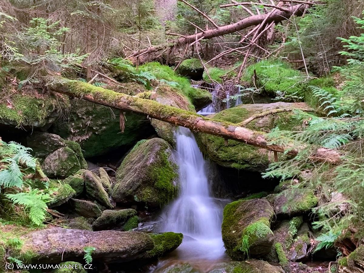 Dvojice menších (ale krásných) vodopádů na levostranném bezejmenném přítoku Úhlavy, nedaleko Zadních Hamrů.