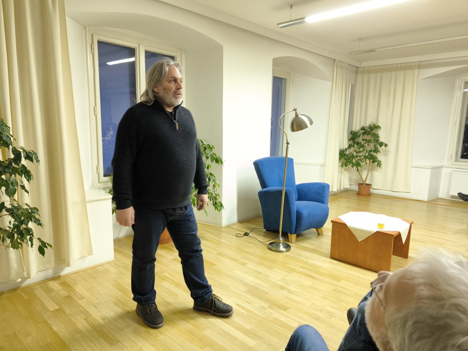 Včera zažil náš sál Městské knihovny Nýrsko ojedinělý literární večer. Sál praskal ve švech a v naprostém tichu bylo slyšet jen myšlenky lidí, kteří byli zataženi do děje. S několika kapitolami z doposud nepublikované knihy Josefa Holuba "Pašerák, který měl štěstí" nás svým neobyčejným přednesem a četbou seznámil Jaroslav Achab Haidler. Všechny přítomné přivítal úvodním slovem p. Pavel Mráz (NSN), p. Lucie Venclová (IC Nýrsko) seznámila všechny s dětským výletem, jehož hlavní inspirací byl právě příběh z této knihy. O přestávce mohli přítomní zhlédnout výstavu fotografií z dobrodružného výletu. Děkujeme všem za neobyčejnou atmosféru včerejšího večera.