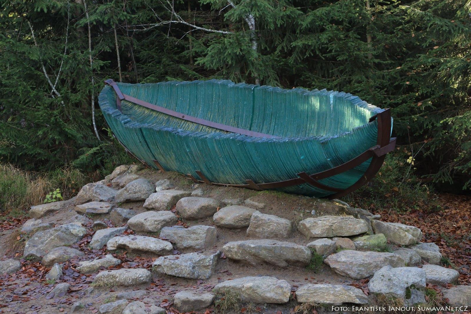 Od parkoviště (START) vede širší lesní cesta značená zeleným trojúhelníčkem, po níž po 1 km dojdete ke Skleněné arše (2). Vytvořili ji němečtí skláři v roce 2003 a o 2 roky později byla vložena do velké dřevěné dlaně, která byla dílem českých řezbářů. 5 let putovala jako symbol přátelství po několika místech Šumavy až definitivně zakotvila tady pod majestátní horou Luzný. Dřevěná ruka, bohužel, podlehla hnilobě a tak dnes stojí archa pouze na nepříliš pohledném podstavci z udusané zeminy obloženém kameny. Ze zdejšího rozcestí vedou stezky do 3 směrů - letní cesta na Luzný, stezka na Roklan přes Teufelsloch a k Modrému sloupu, který je odtud vzdálen 1 km.